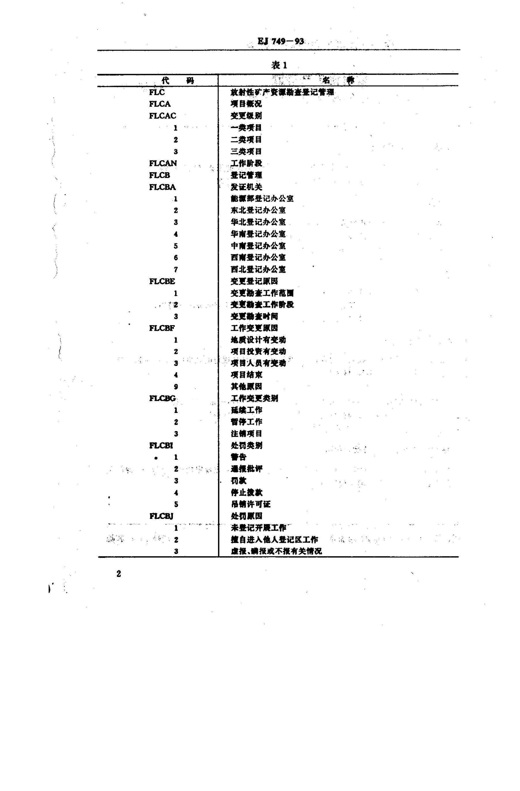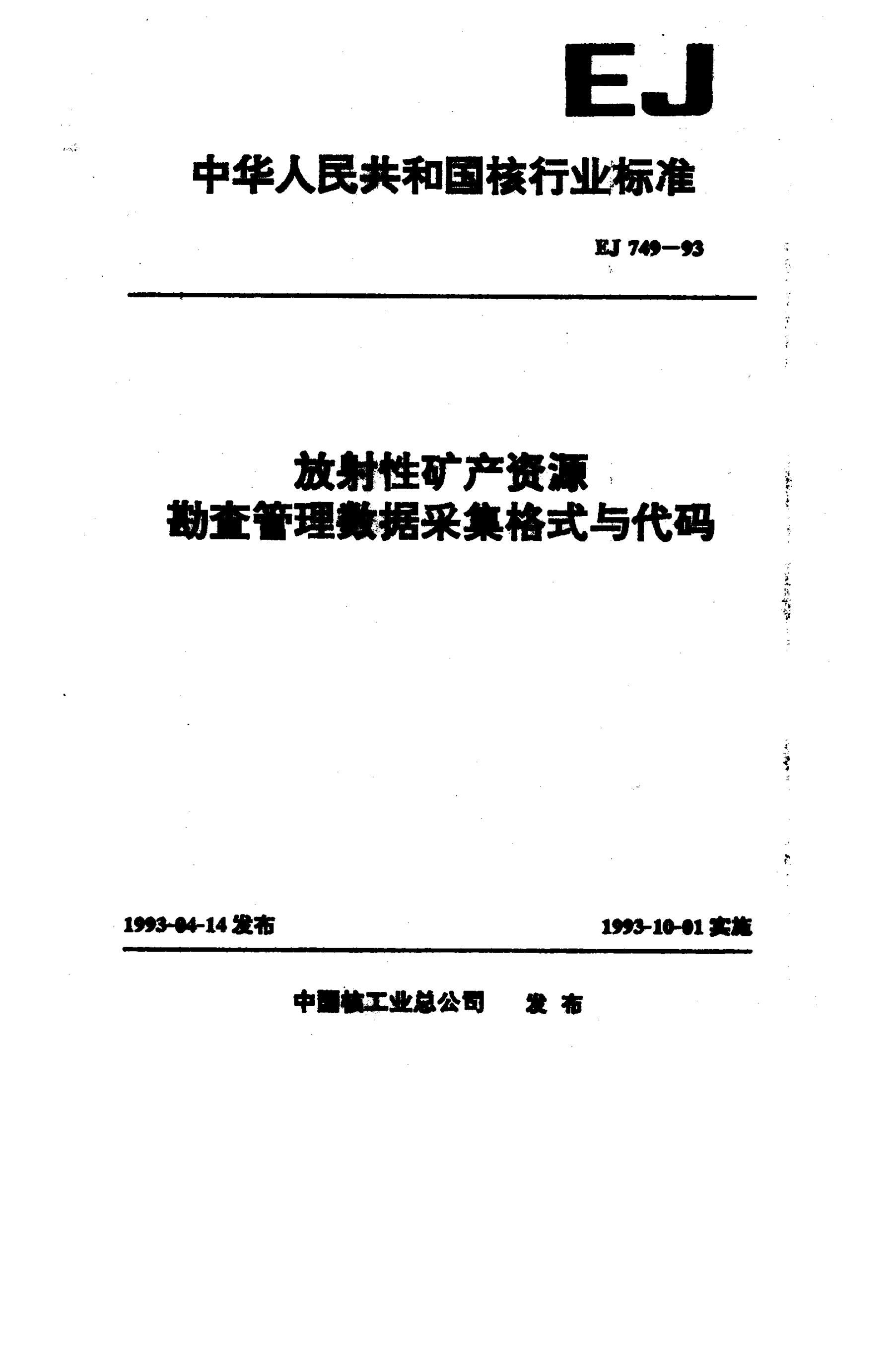 EJ 749-1993 放射性矿产资源勘查管理数据采集格式与代码