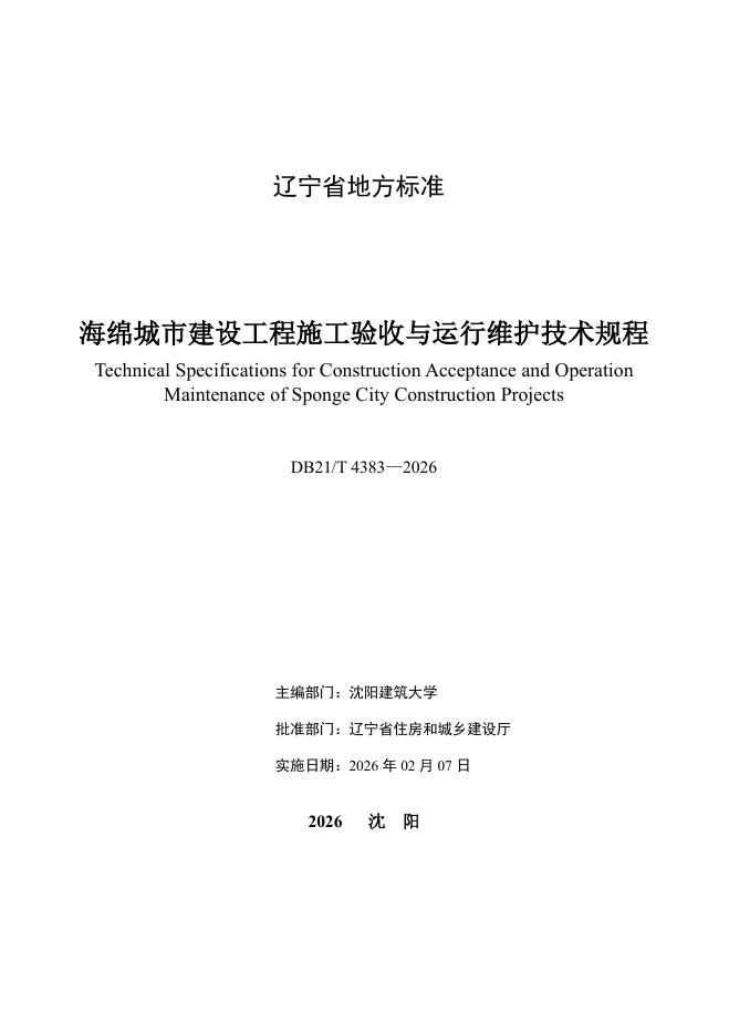 DB21/T 4383-2026 海绵城市建设工程施工验收与运行维护技术规程