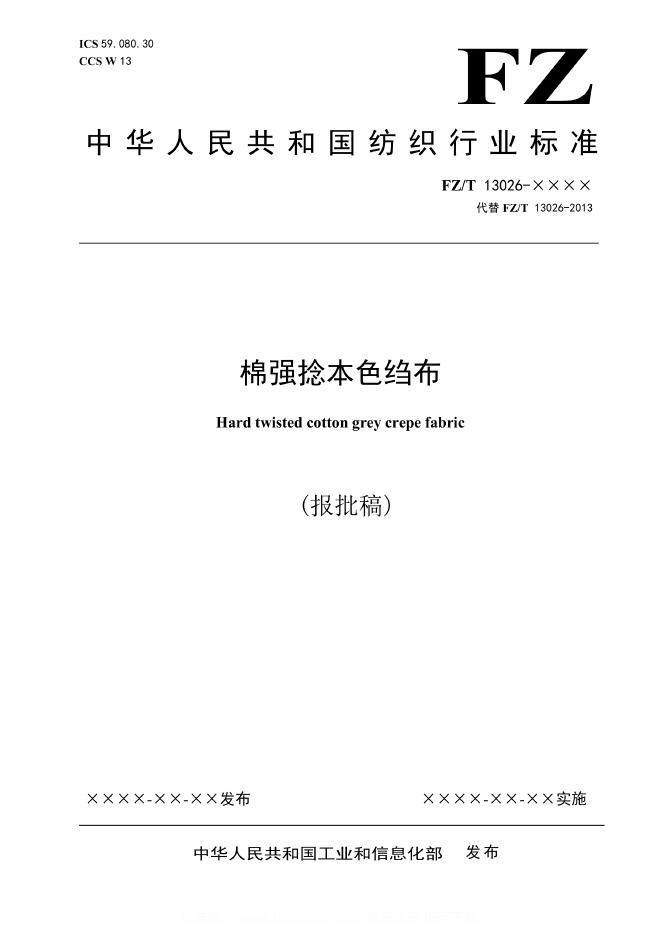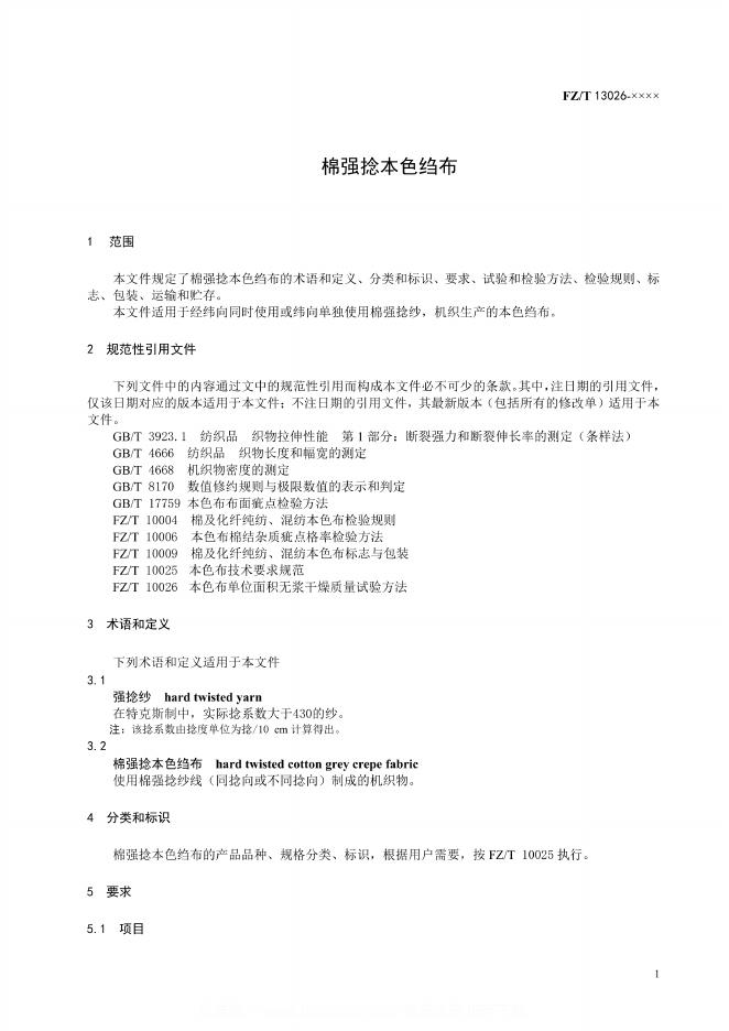 FZ/T 13026-2023 棉强捻本色绉布(报批稿)
