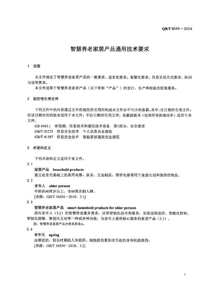 QB/T 8090-2024 智慧养老家居产品通用技术要求