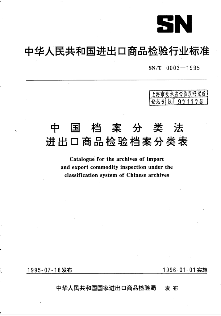 SN/T 0003-1995 中国档案分类法进出口商品检验档案分类表