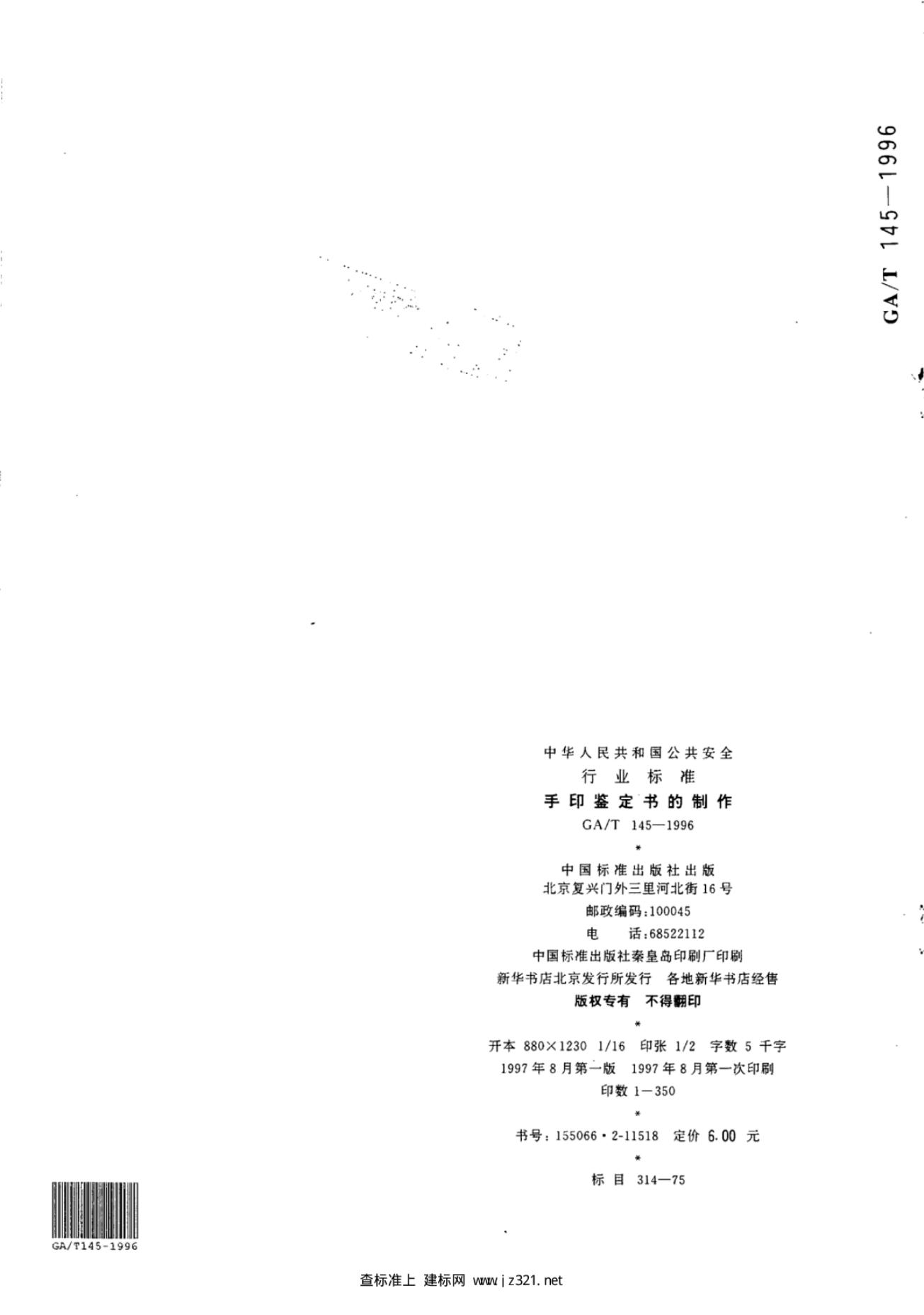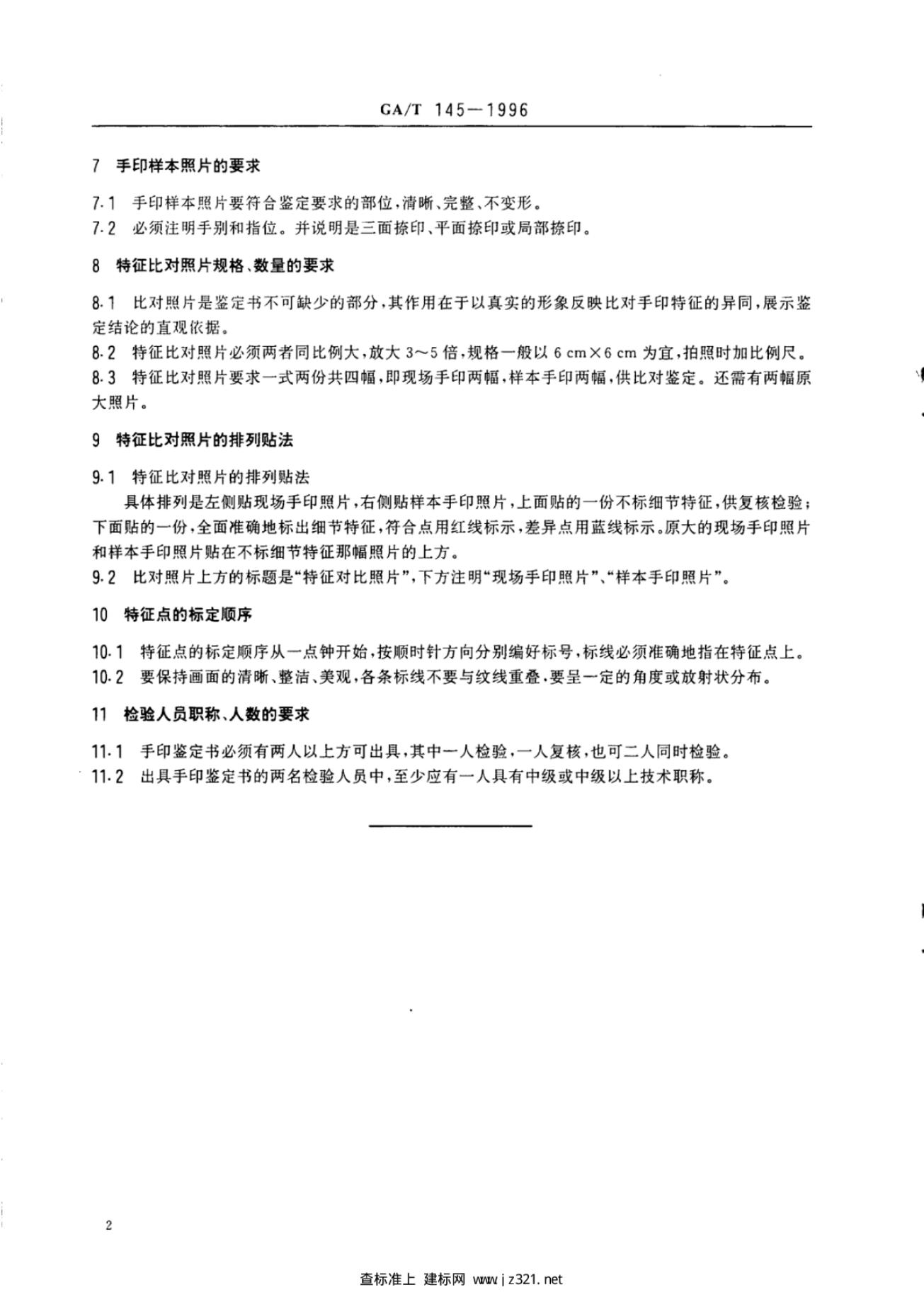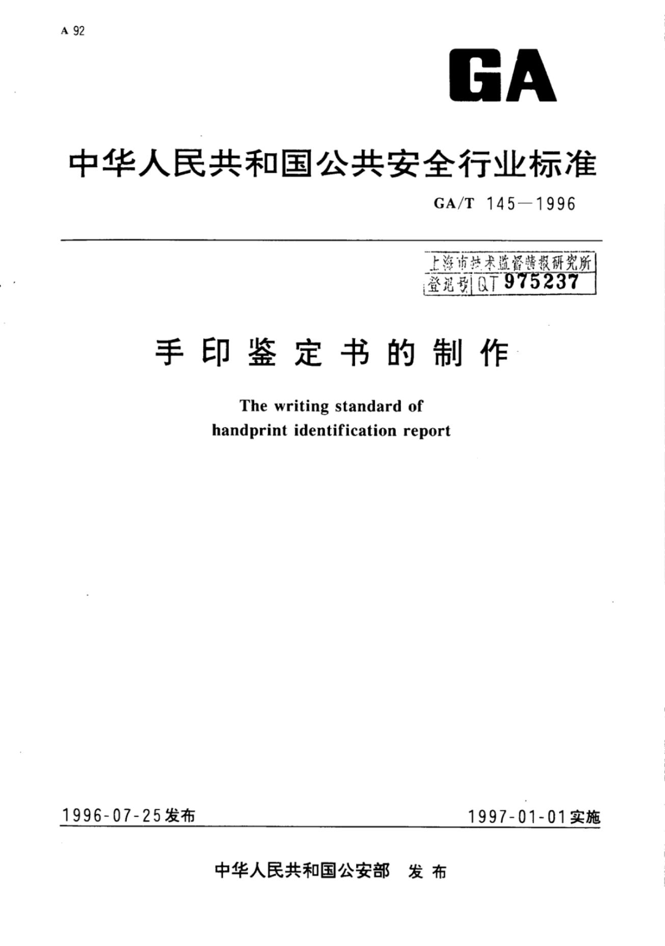 GA/T 0145-1996 手印鉴定书的制作