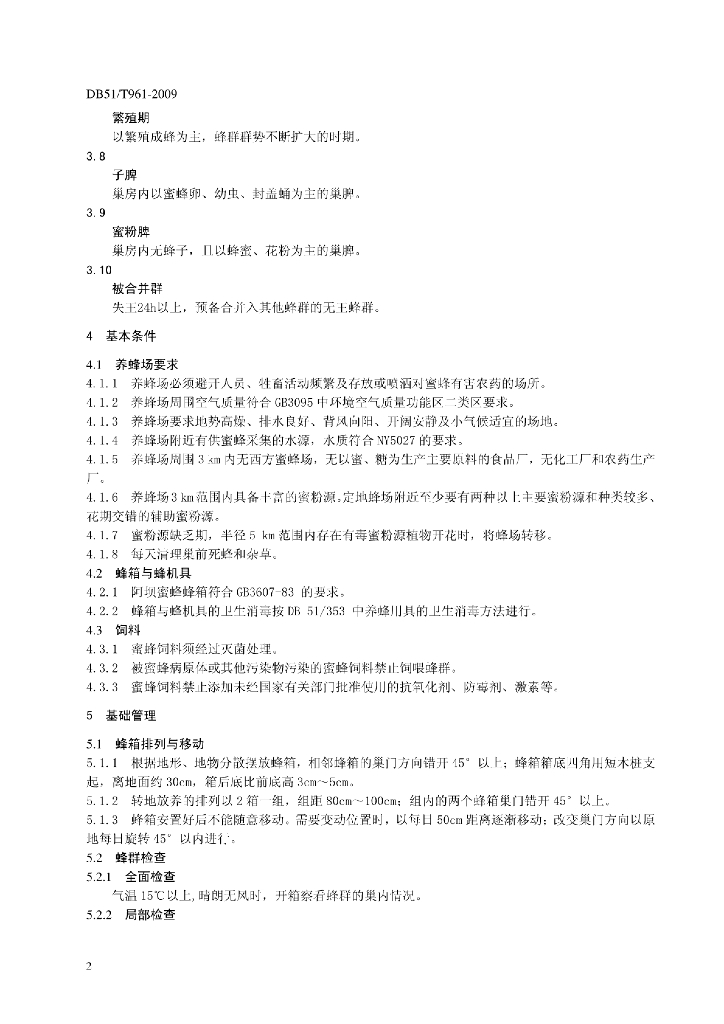 DB51/T 961-2009 阿坝蜜蜂饲养技术规范