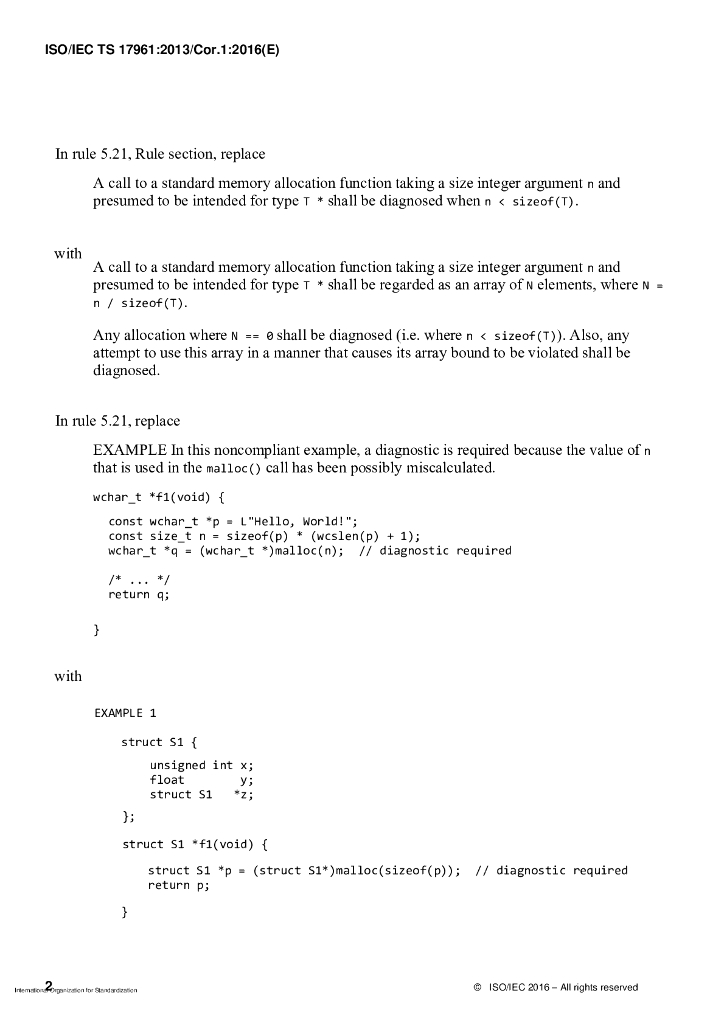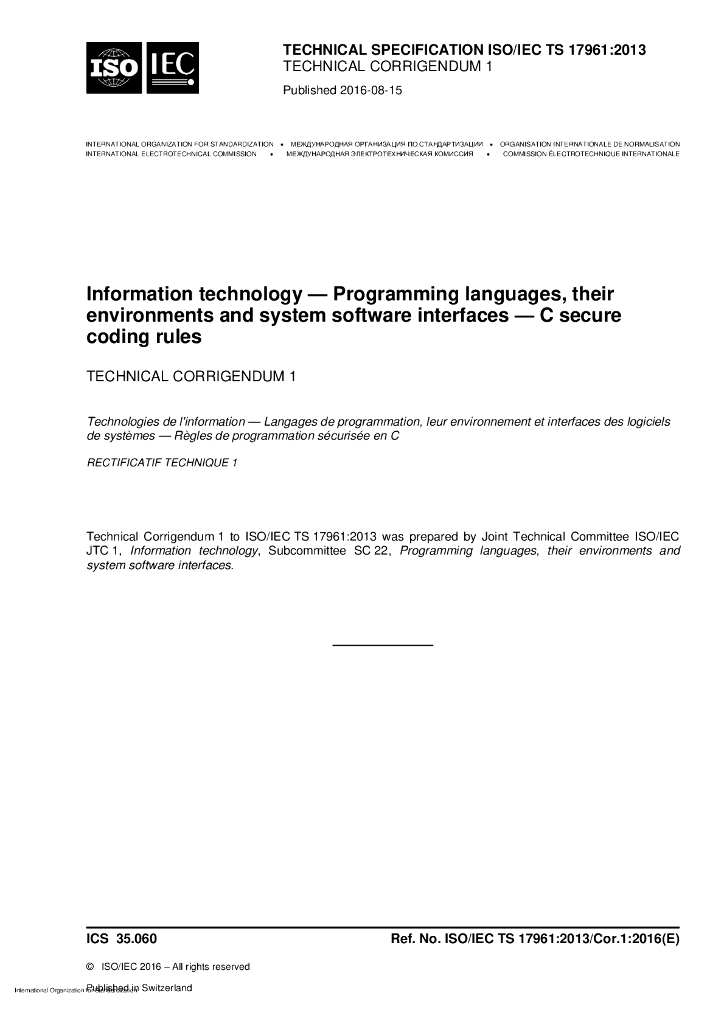 ISO/IEC TS 17961-2013/Cor 1-2016 勘误1:信息技术 程序设计语言及其环境和系统软件接口 C安全编码规则
