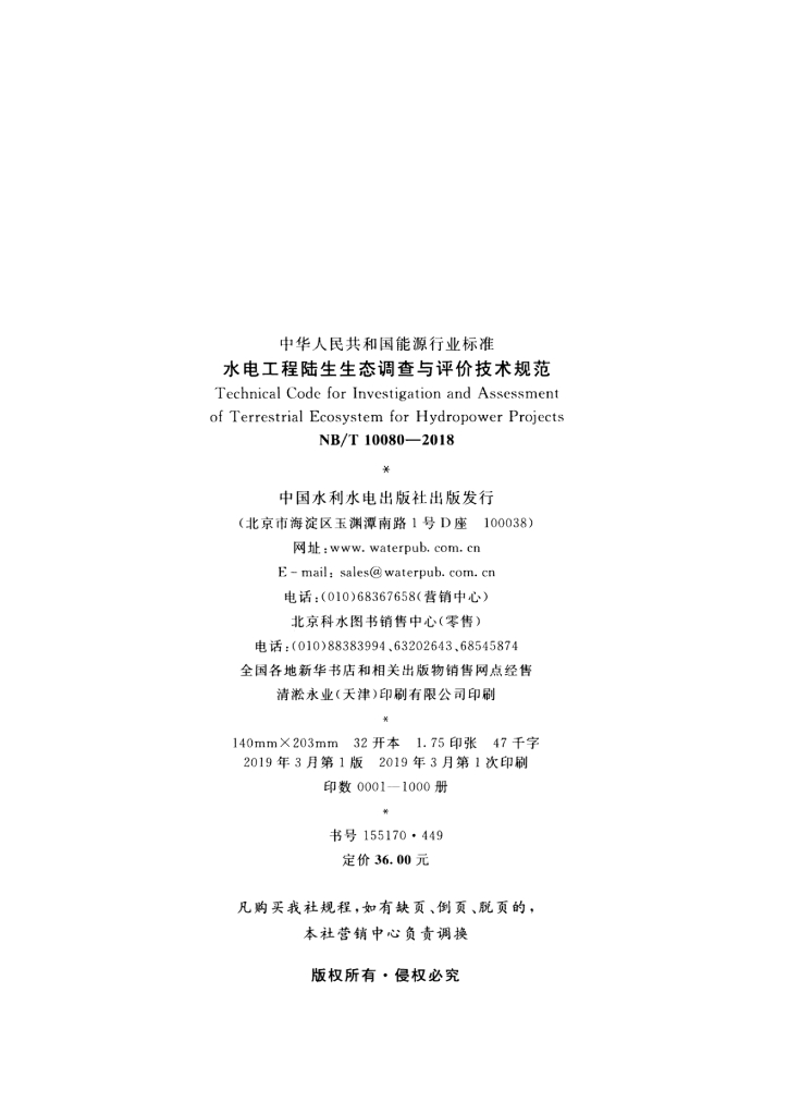 NB/T 10080-2018 水电工程陆生生态调查与评价技术规范