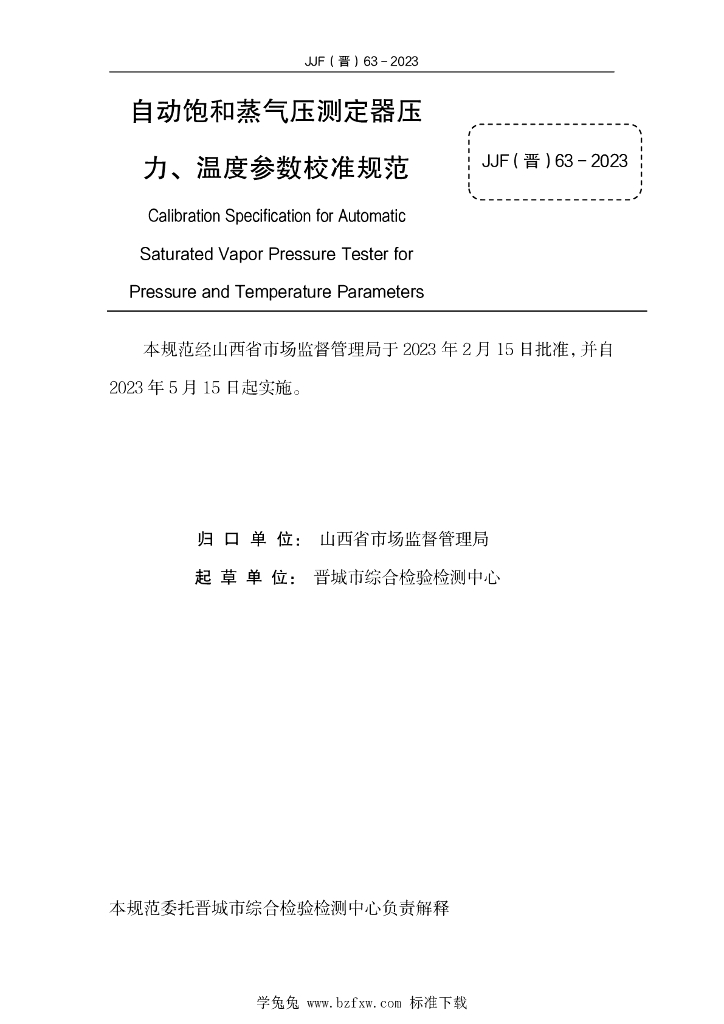 JJF(晋)63-2023 自动饱和蒸气压测定器压力、温度参数校准规范