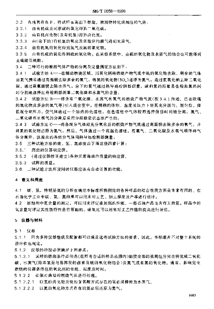 SH/T 0656-1998 石油产品及润滑剂中碳、氢、氮测定法(元素分析仪法)