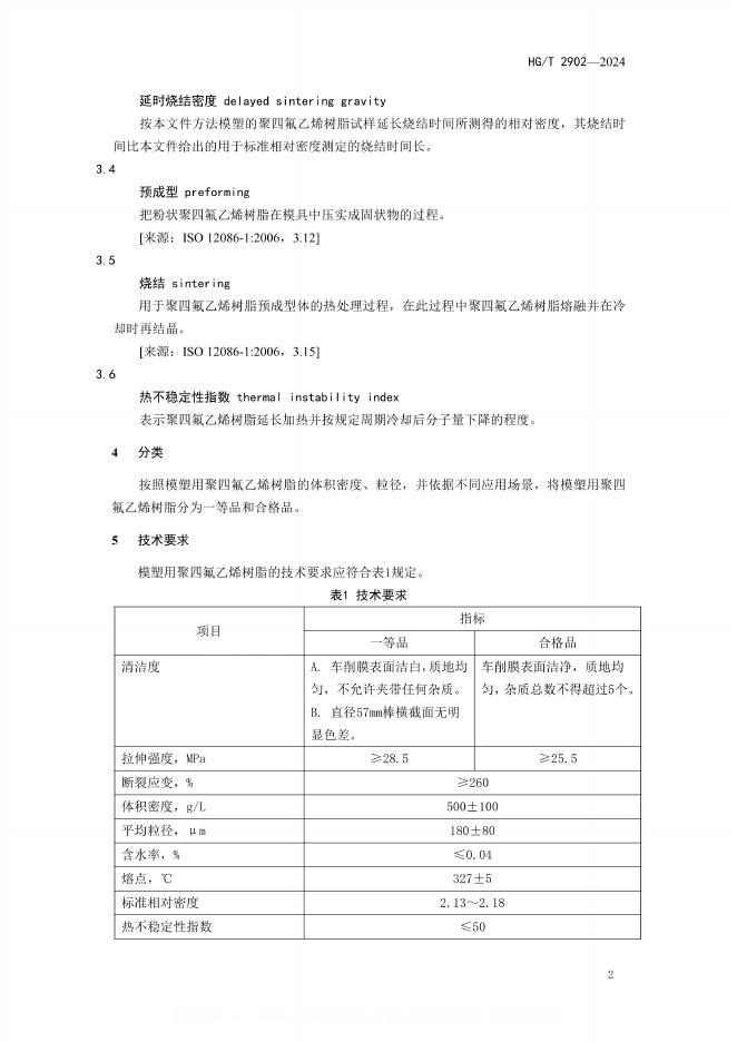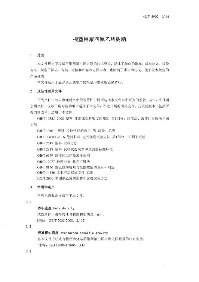 HG/T 2902-2024 模塑用聚四氟乙烯树脂