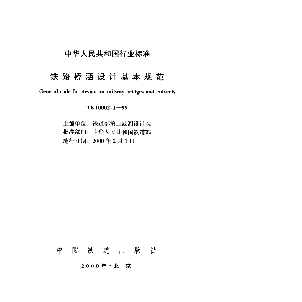 TB 10002.1-1999 铁路桥涵设计基本规范