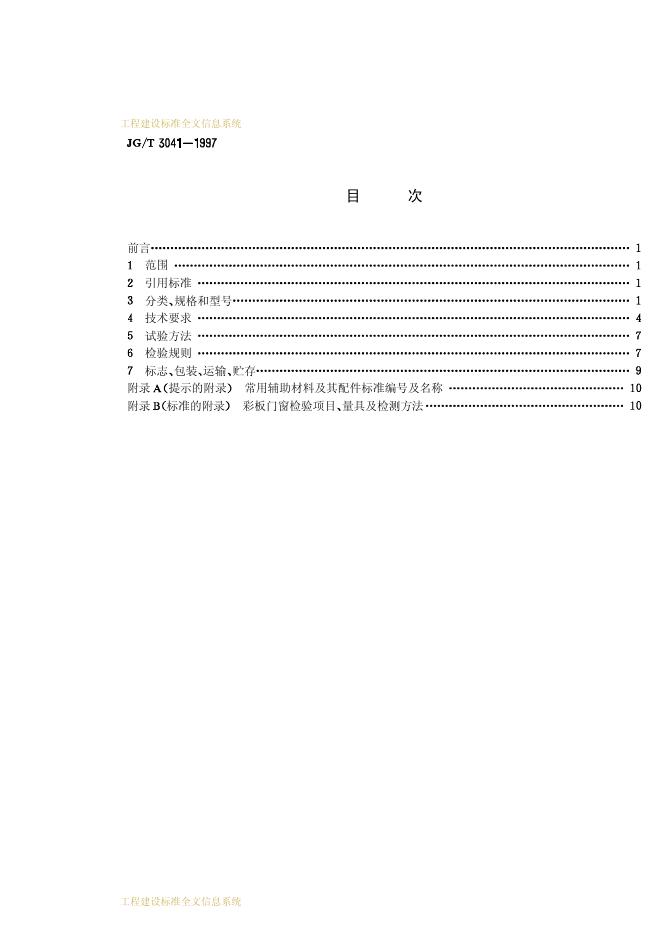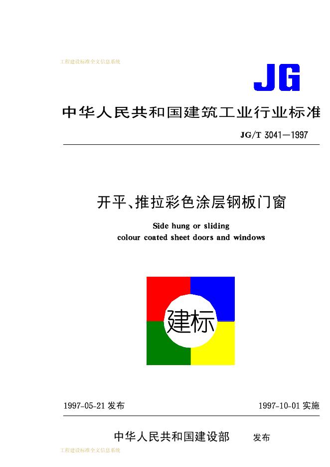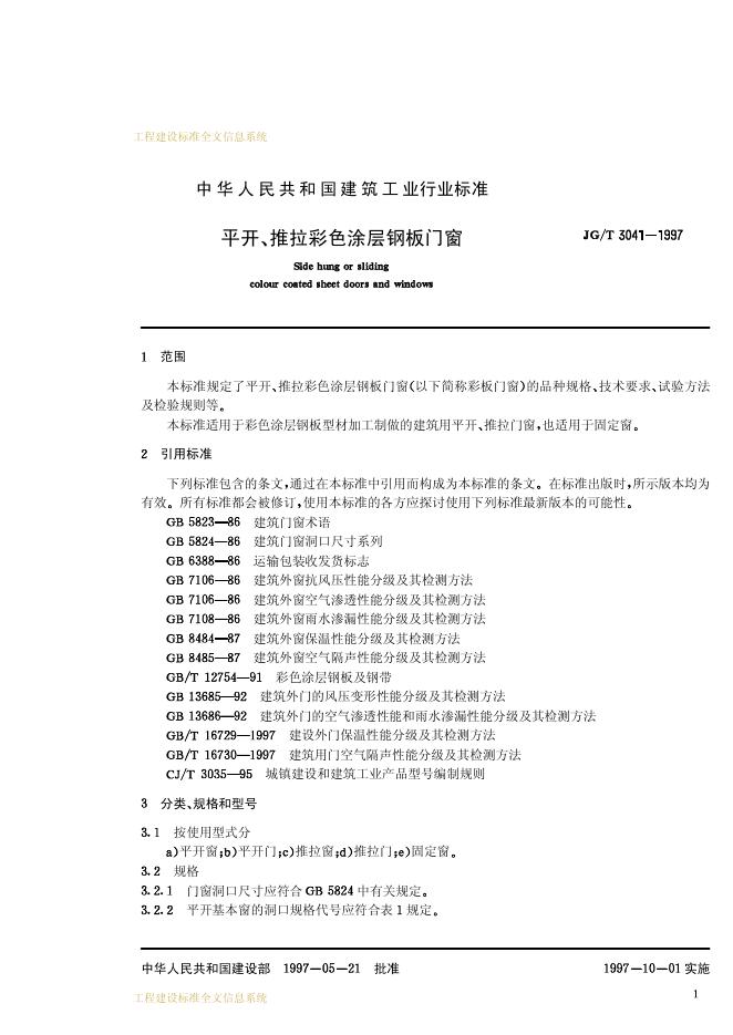 JG/T 3041-1997 开平、推拉彩色涂层钢板门窗