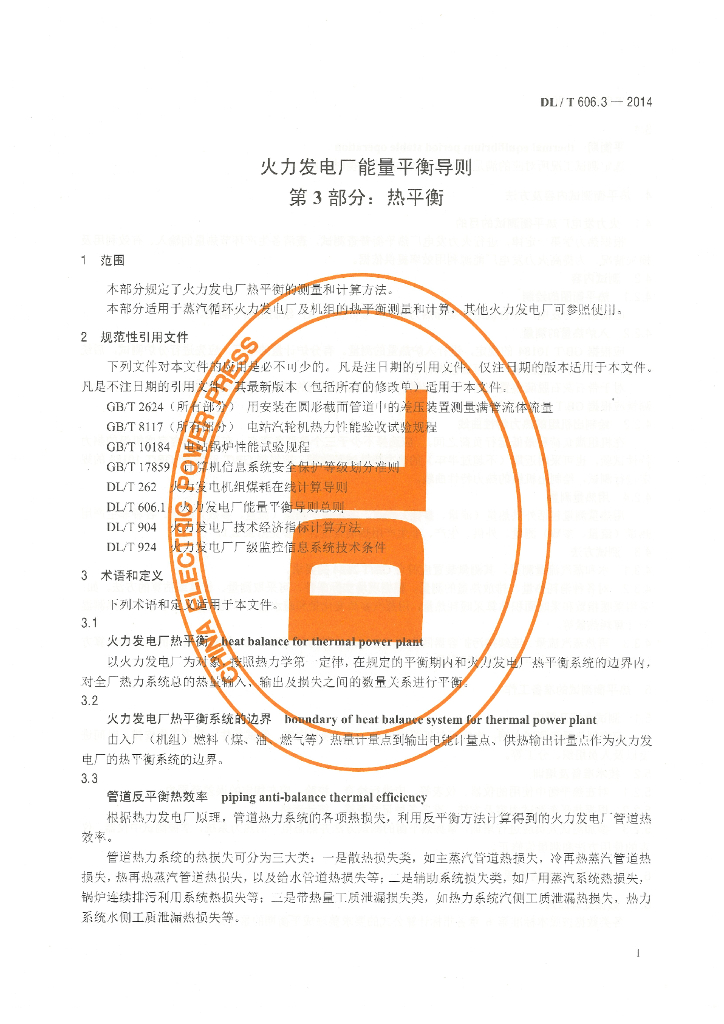 DL/T 606.3-2014 火力发电厂能量平衡导则 第3部分:热平衡