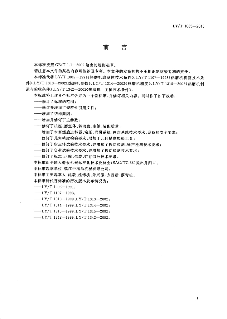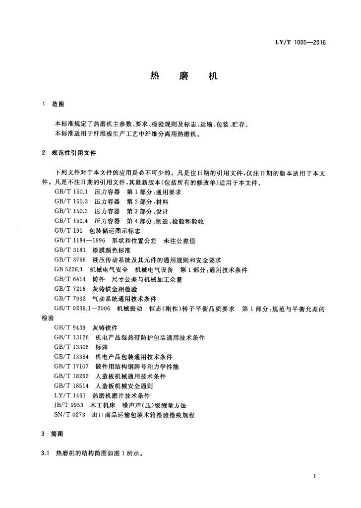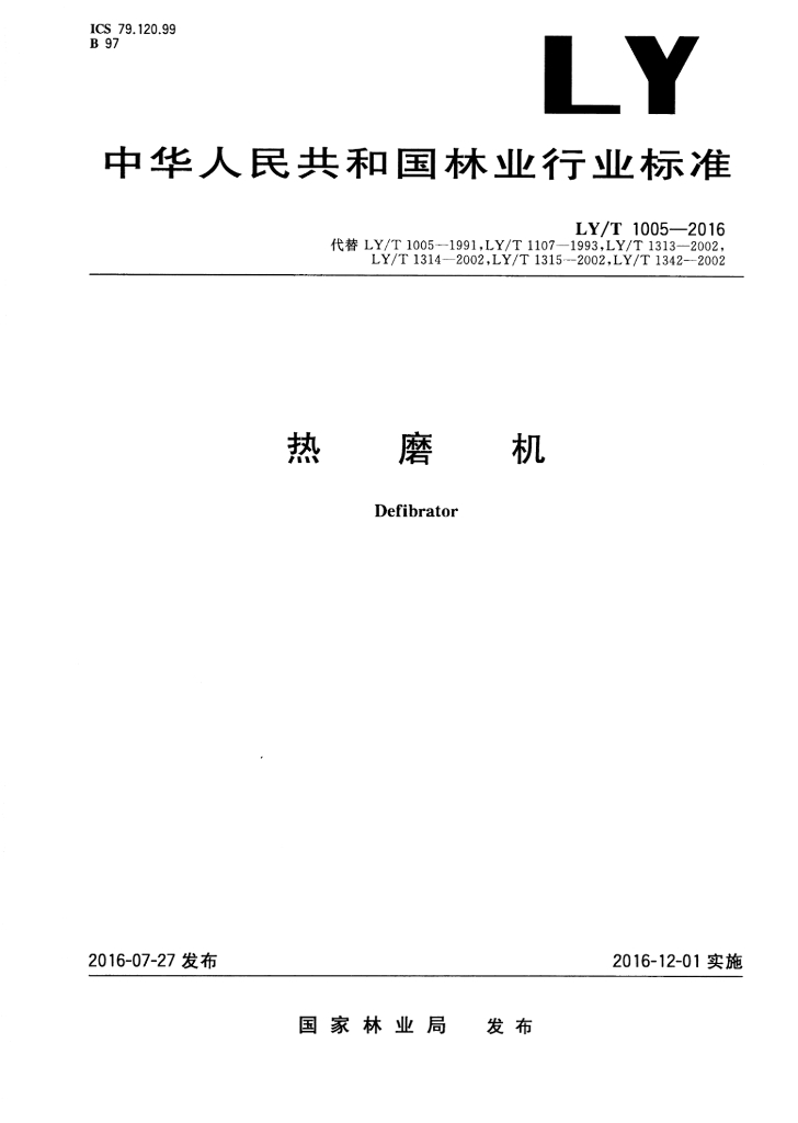 LY/T 1005-2016 热磨机