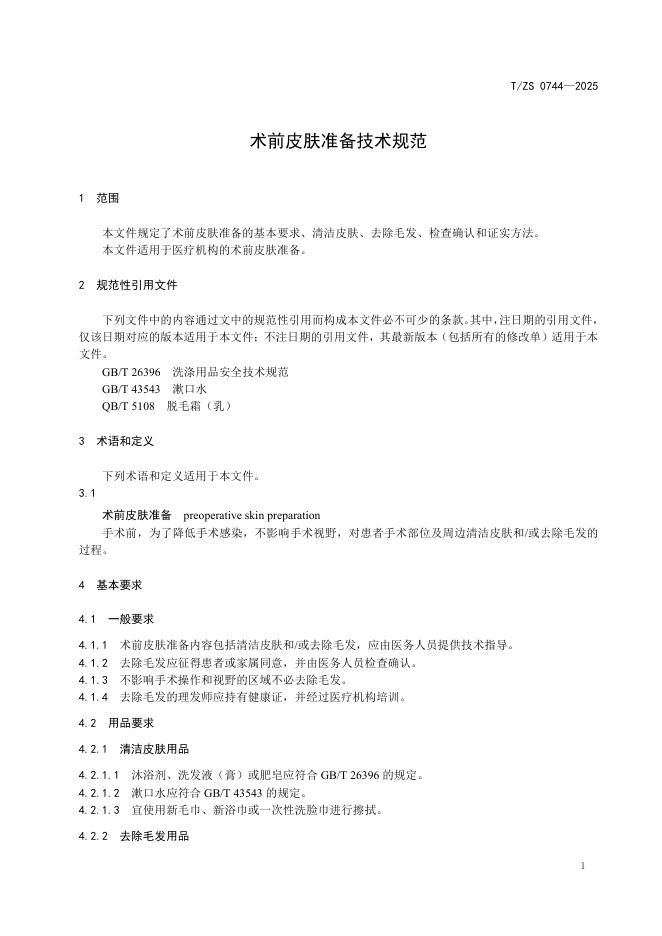 T/ZS 0744-2025 术前皮肤准备技术规范