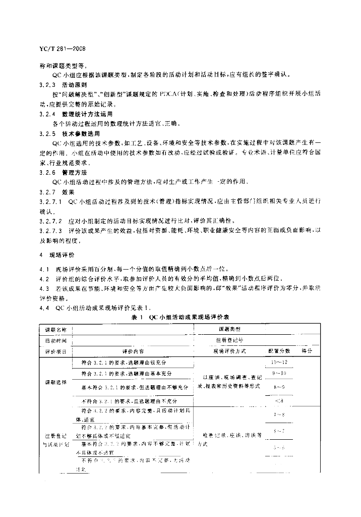 YC/T 281-2008 烟草工业企业QC小组活动成果现场评价准则