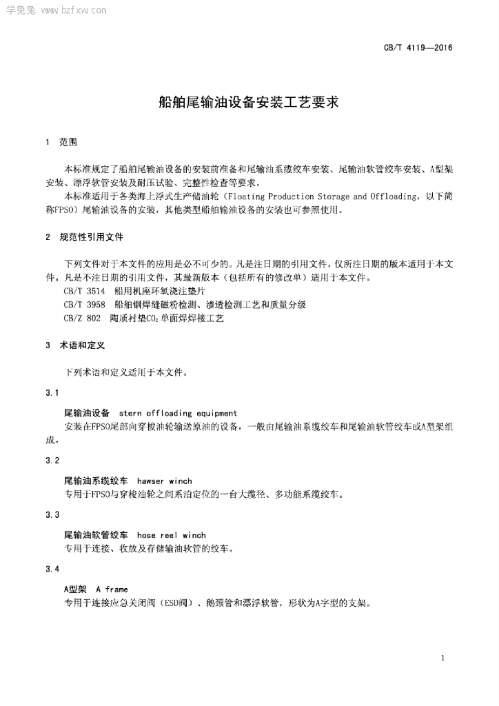 CB/T 4119-2016 船舶尾输油设备安装工艺要求