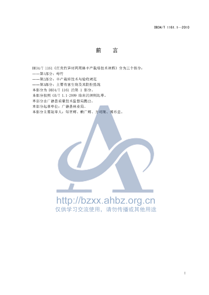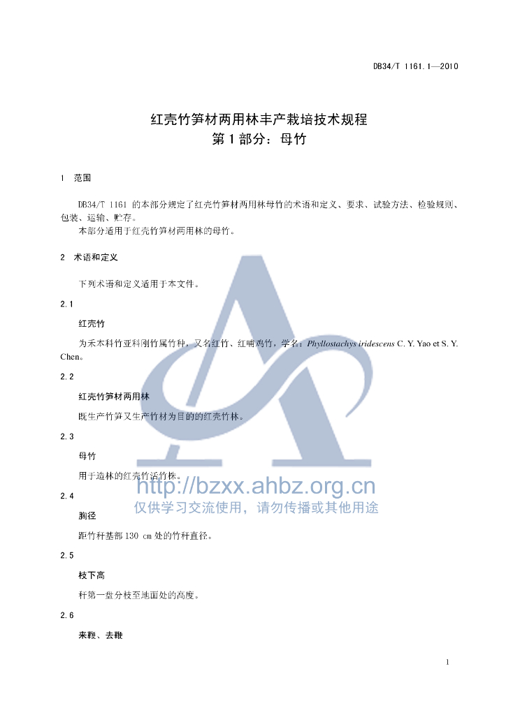 DB34/T 1161.1-2010 红壳竹笋材两用林丰产栽培技术规程 第1部分: 母竹