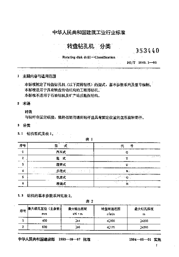 JG/T 5043.1-1993 转盘钻孔机 分类
