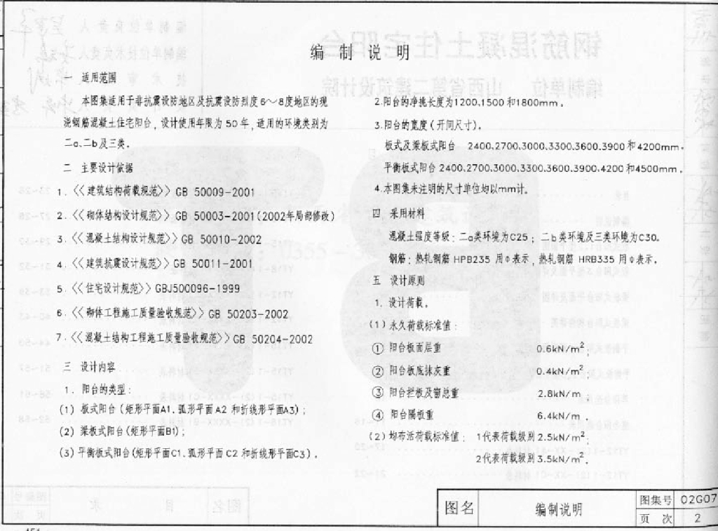 02G07 钢筋混凝土住宅阳台图集
