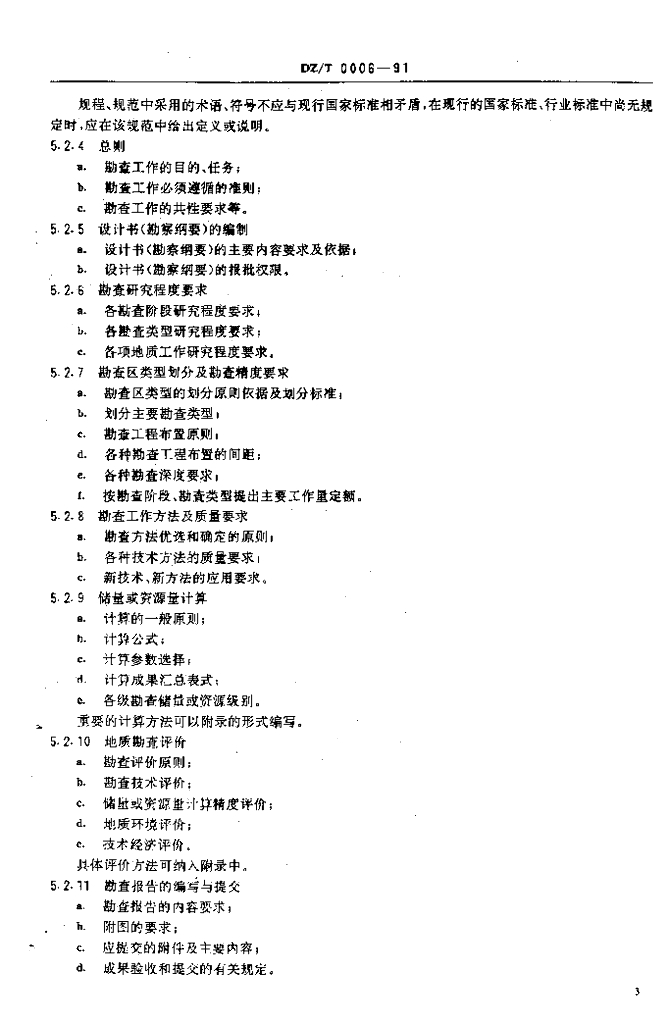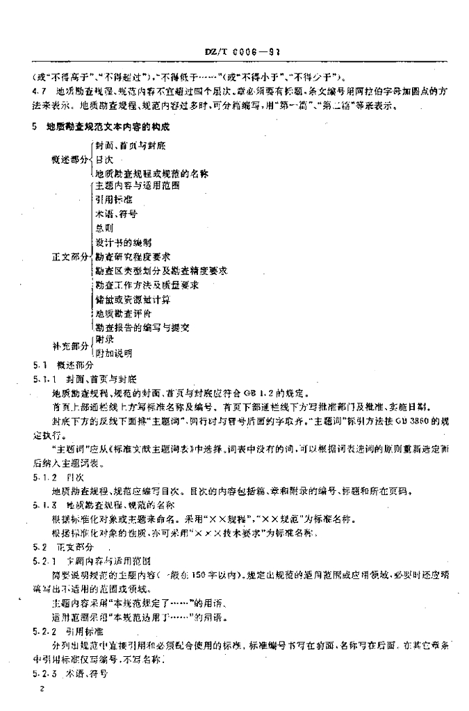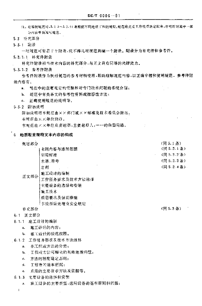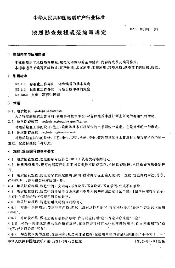 DZ/T 0006-1991 地质勘查规程规范编写规定