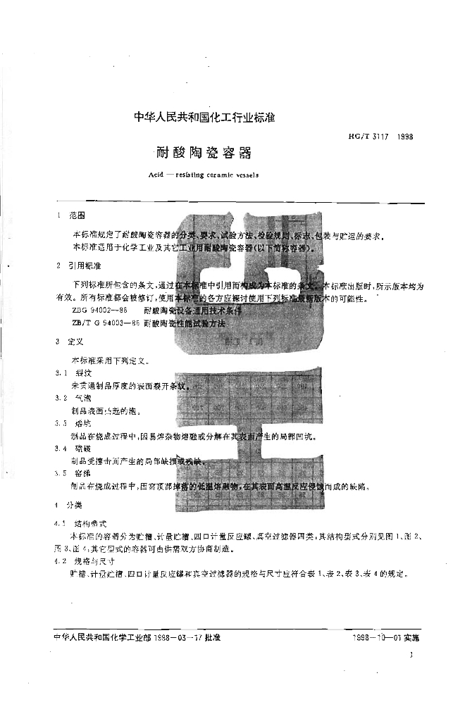 HG/T 3117-1998 耐酸陶瓷容器