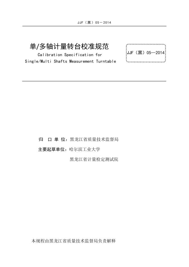 JJF(黑)05-2014 单/多轴计量转台校准规范