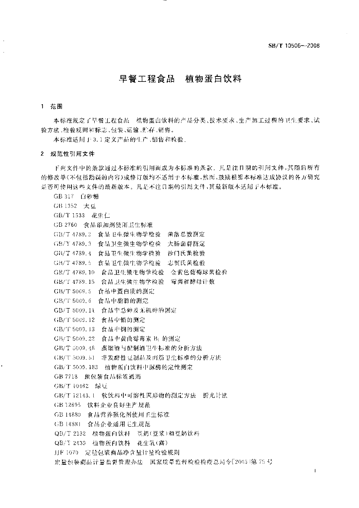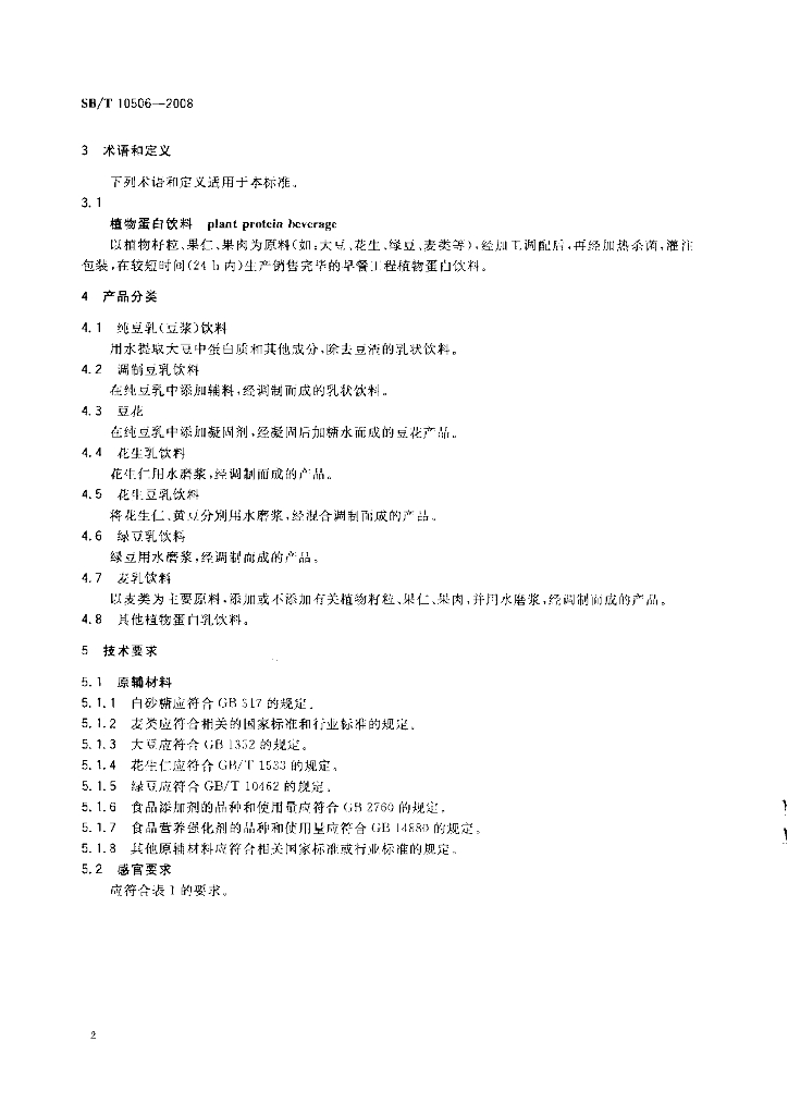 SB/T 10506-2008 早餐工程食品 植物蛋白饮料