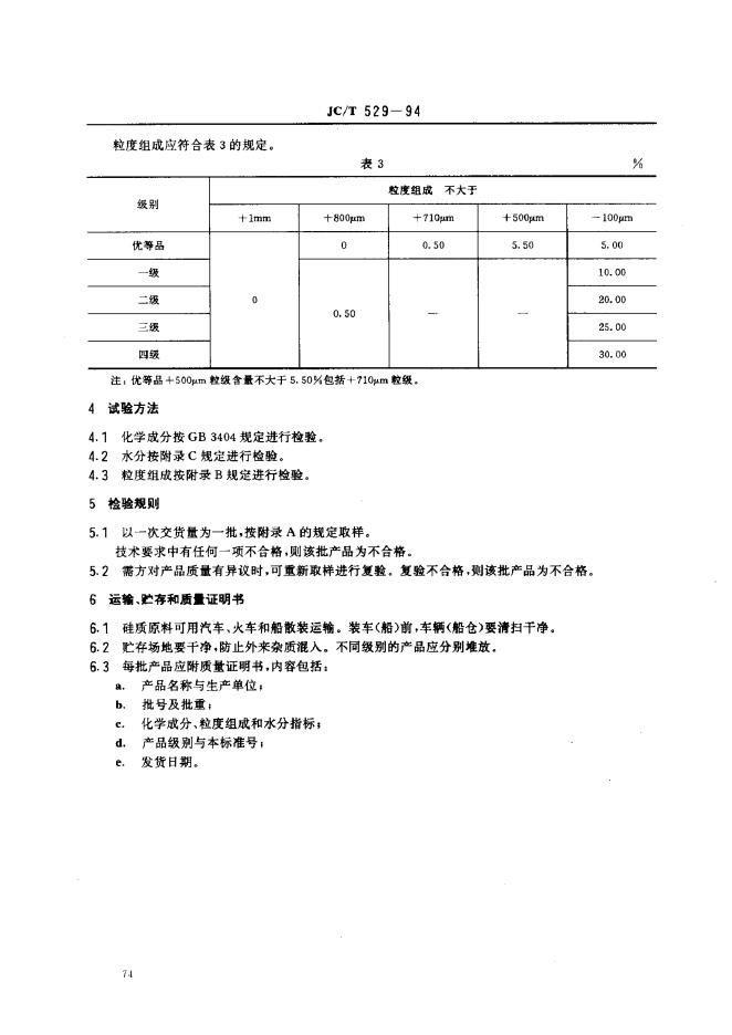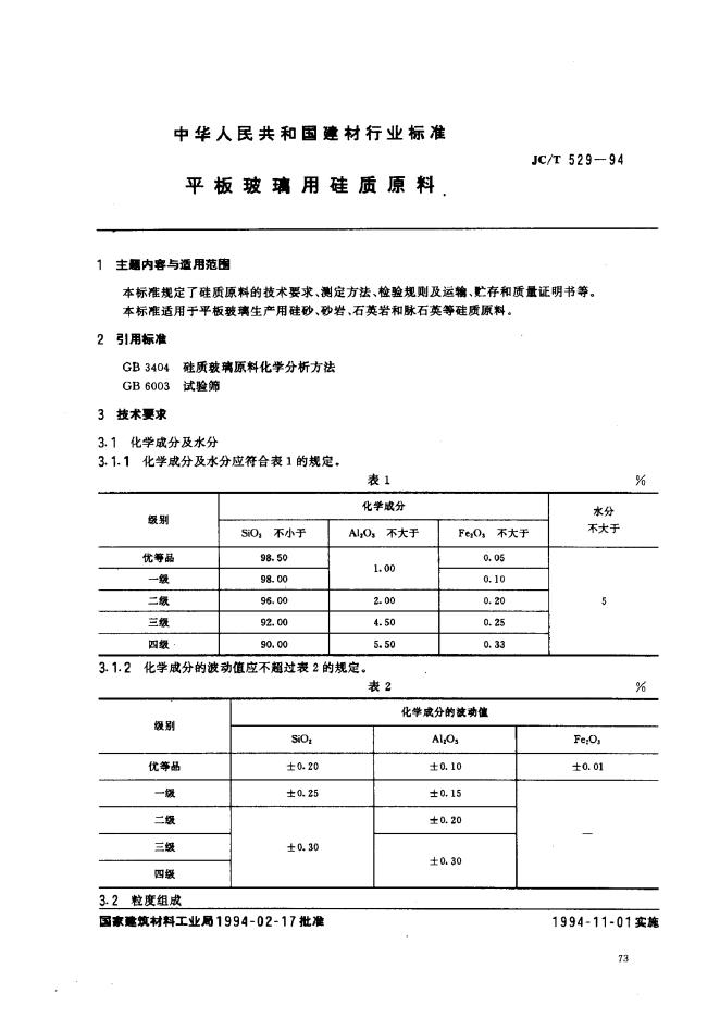 JC/T 529-1994 平板玻璃用硅质原料