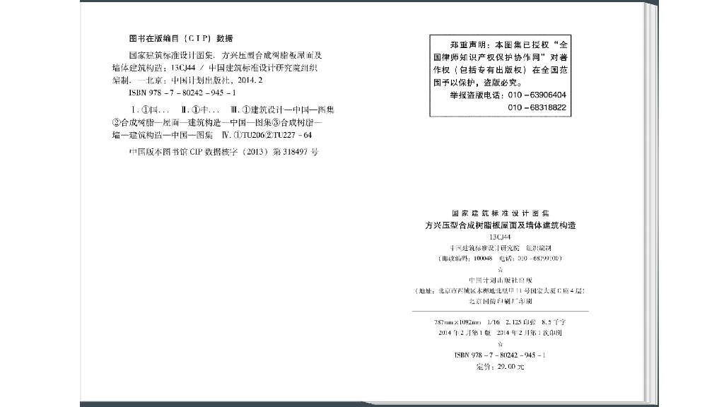 13CJ44 方兴压型合成树脂板屋面及墙体建筑构造参考图集