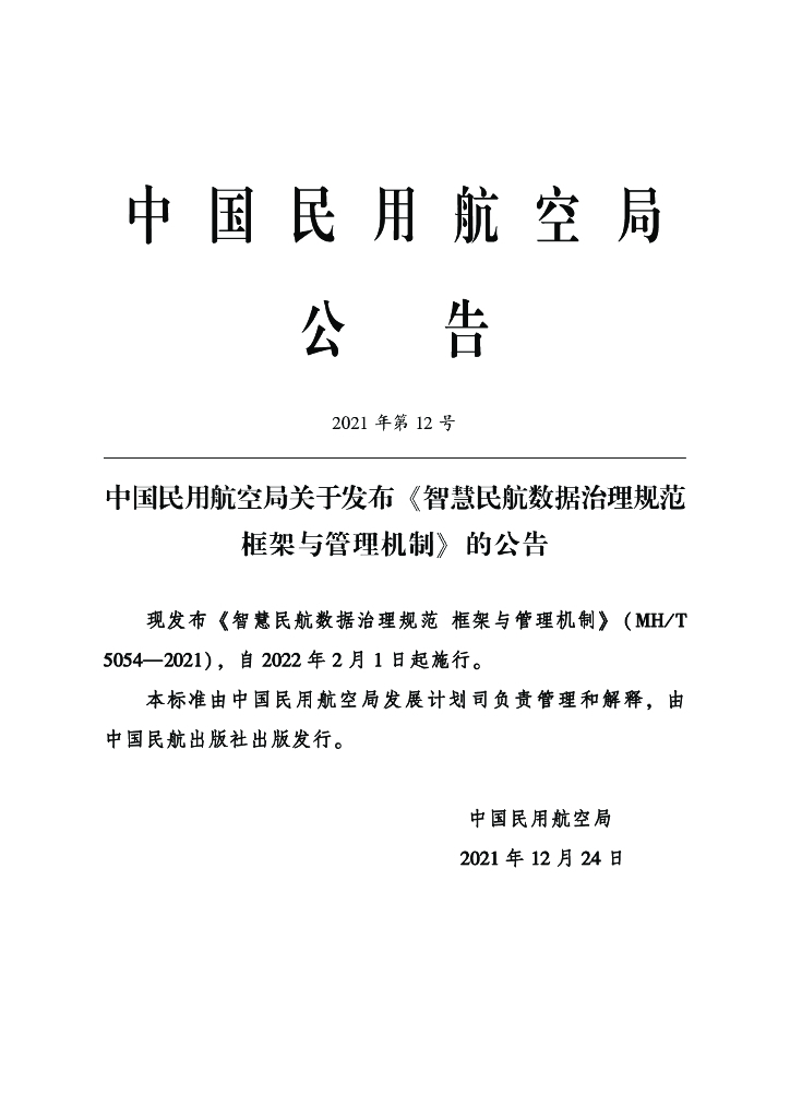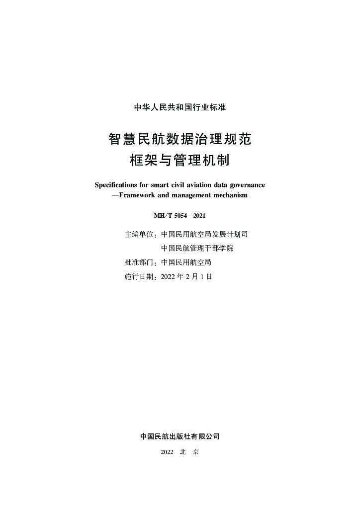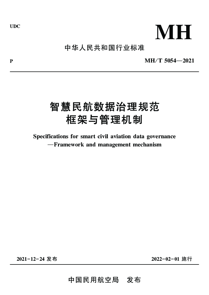 MH/T 5054-2021 智慧民航数据治理规范框架与管理机制