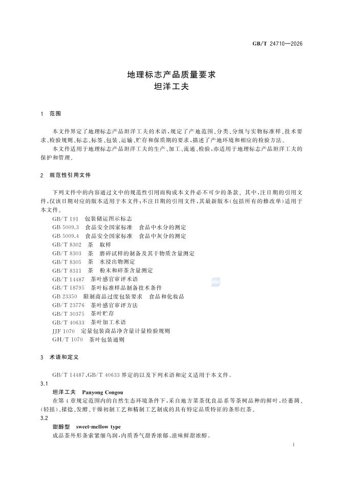 GB/T 24710-2026 地理标志产品质量要求 坦洋工夫