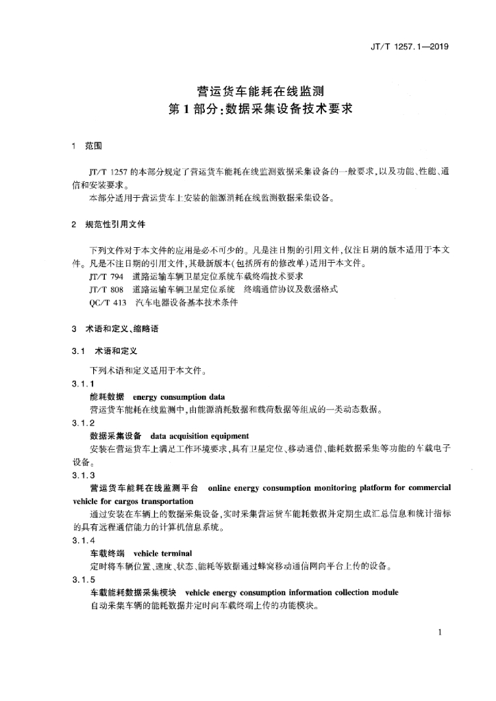 JT/T 1257.1-2019 营运货车能耗在线监测 第1部分:数据采集设备技术要求