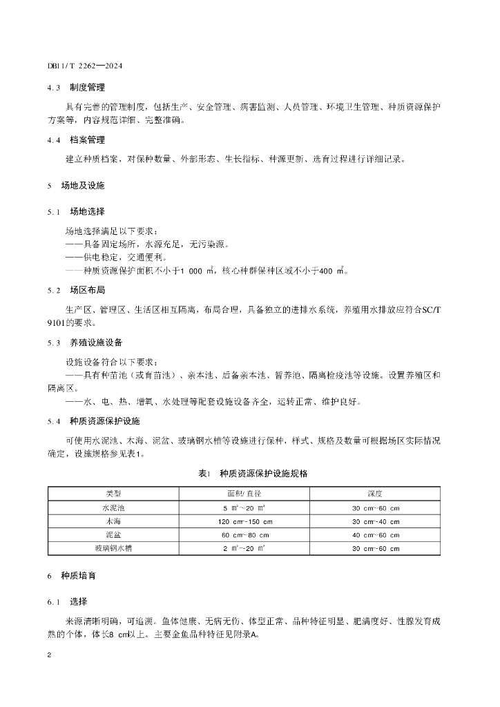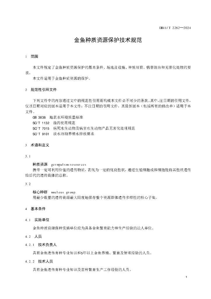 DB11/T 2262-2024 金鱼种质资源保护技术规范