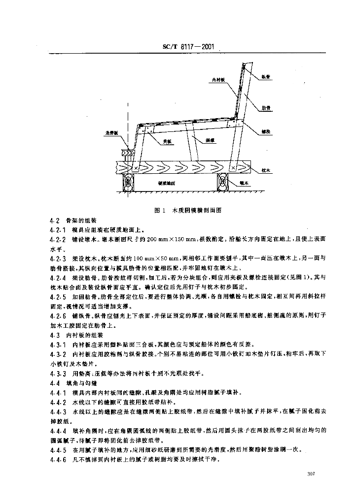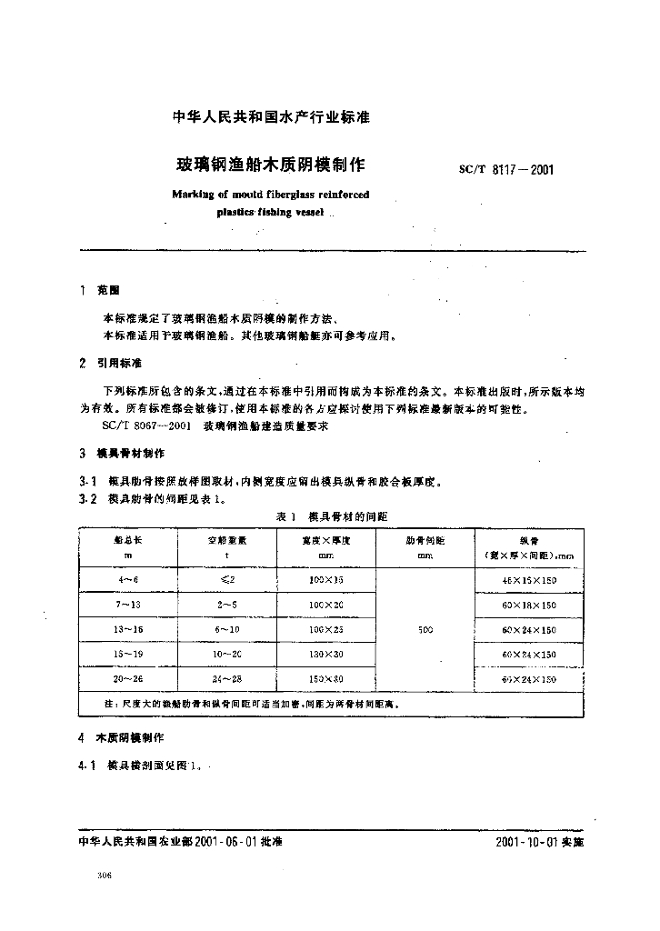 SC/T 8117-2001 玻璃钢渔船木质阴模制作