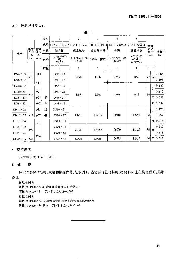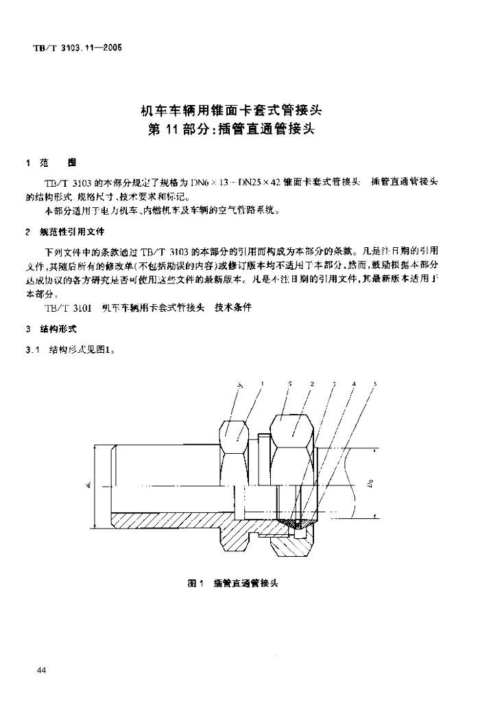 TB/T 3103.11-2005 机车车辆用锥面卡套式管接头 第11部分:插管直通管接头