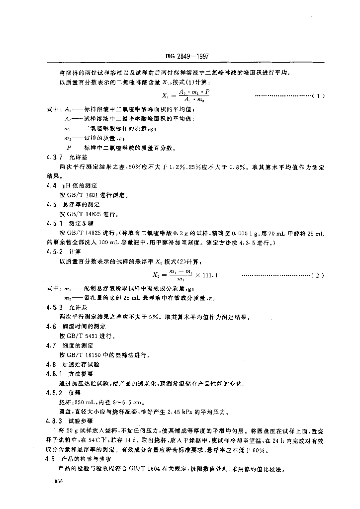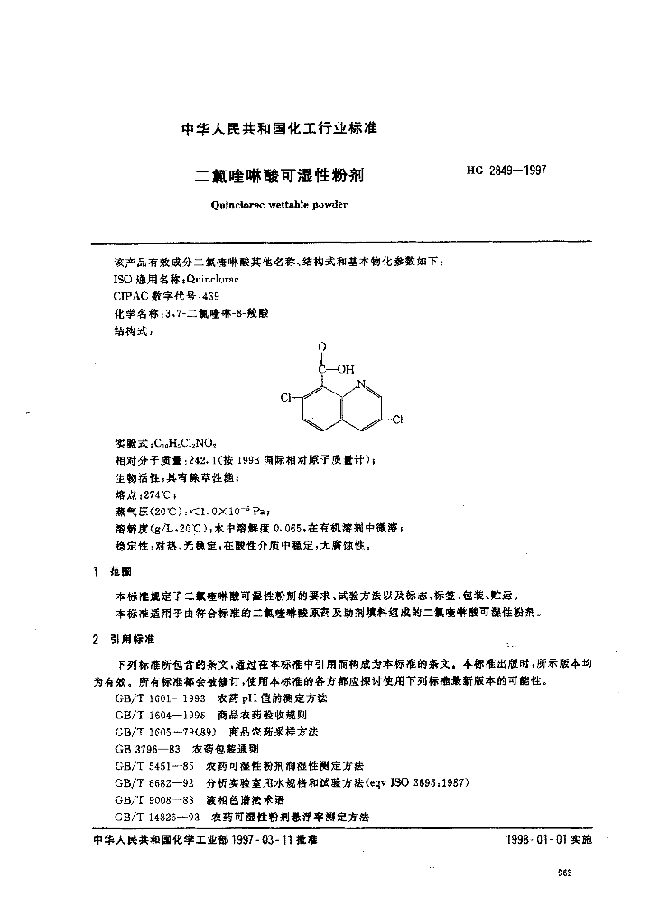 HG 2849-1997 二氯喹啉酸可湿性粉剂