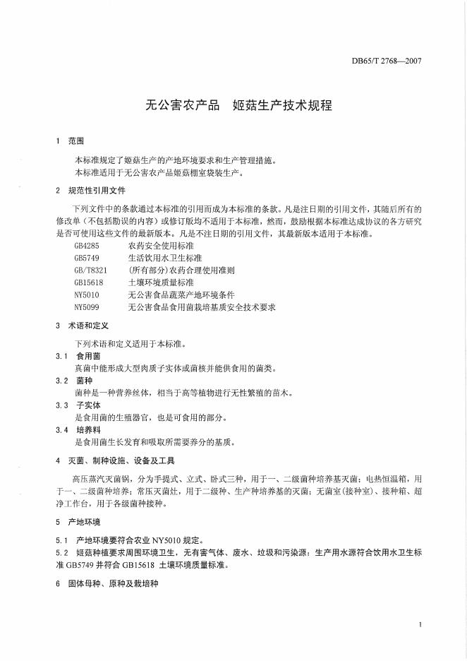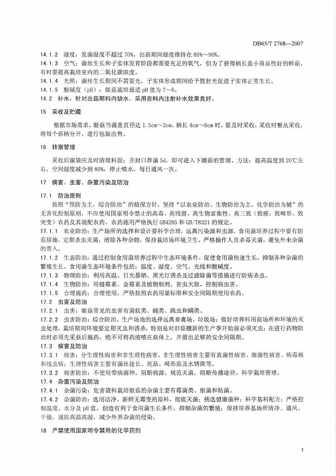 DB65/T 2768-2007 无公害农产品 姬菇生产技术规程