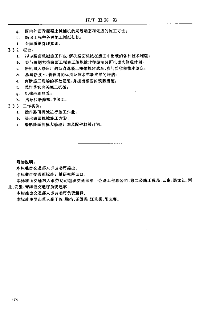JT/T 33.26-1993 交通行业工人技术等级标准公路工程与航务工程沥青混凝土摊铺机操作工