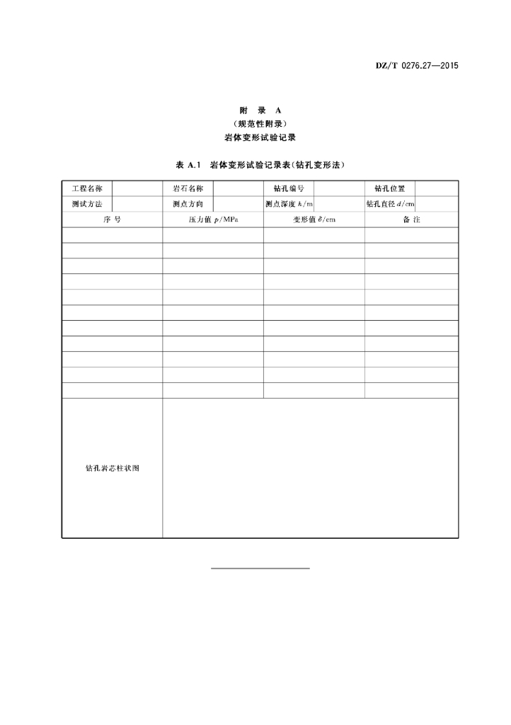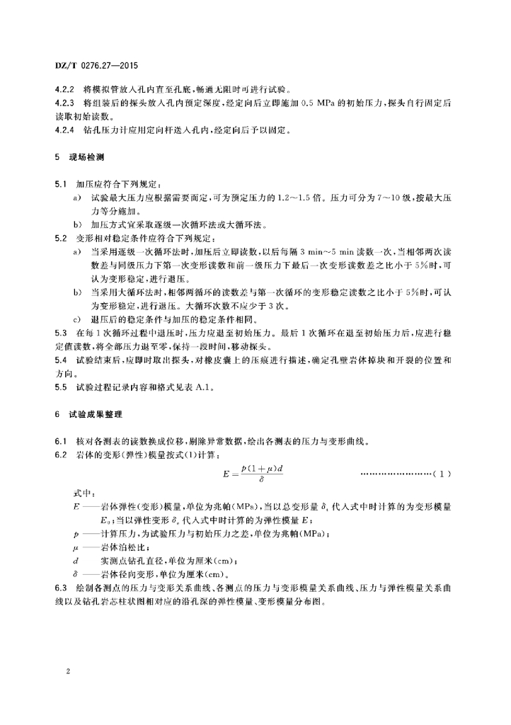 DZ/T 0276.27-2015 岩石物理力学性质试验规程 第27部分:岩体变形试验(钻孔变形法)
