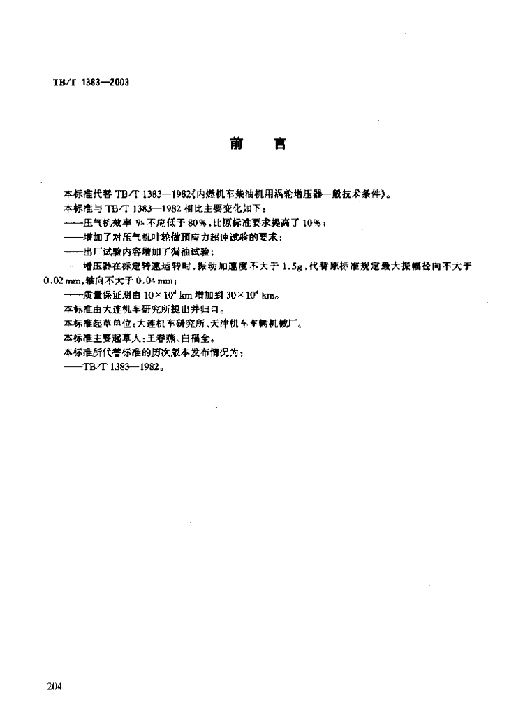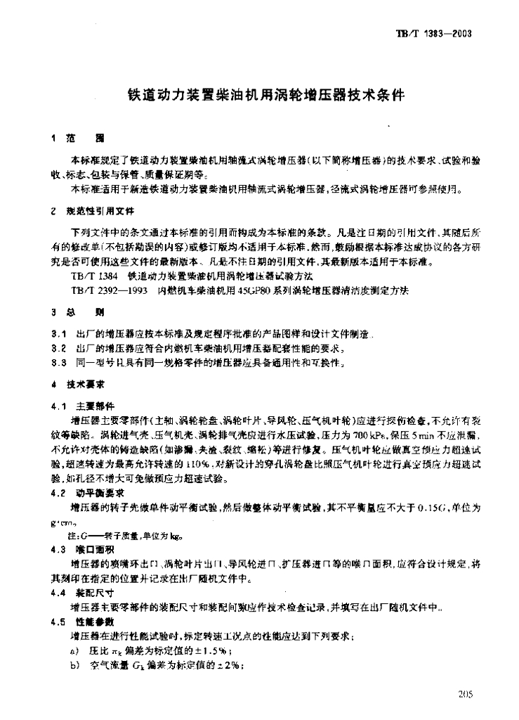 TB/T 1383-2003 铁道动力装置柴油机用涡轮增压器技术条件