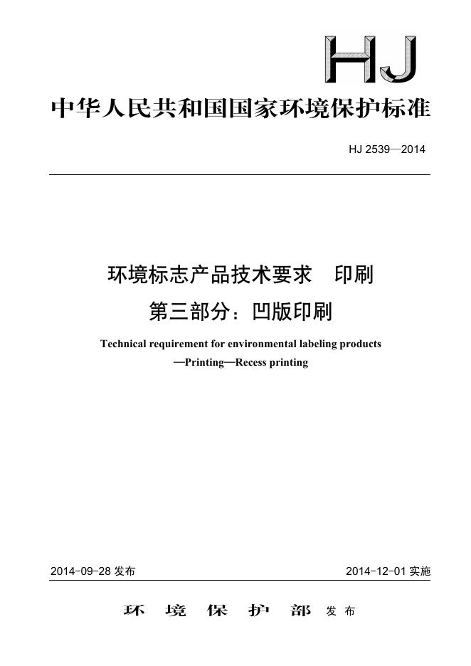 HJ 2539-2014 HJ2539-2014环境标志产品技术要求 印刷 第三部分:凹版印刷
