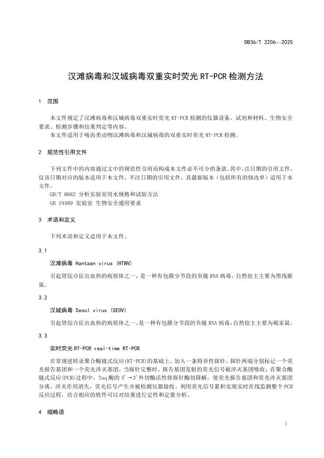DB36/T 2206-2025 汉滩病毒和汉城病毒双重实时荧光RT-PCR检测方法