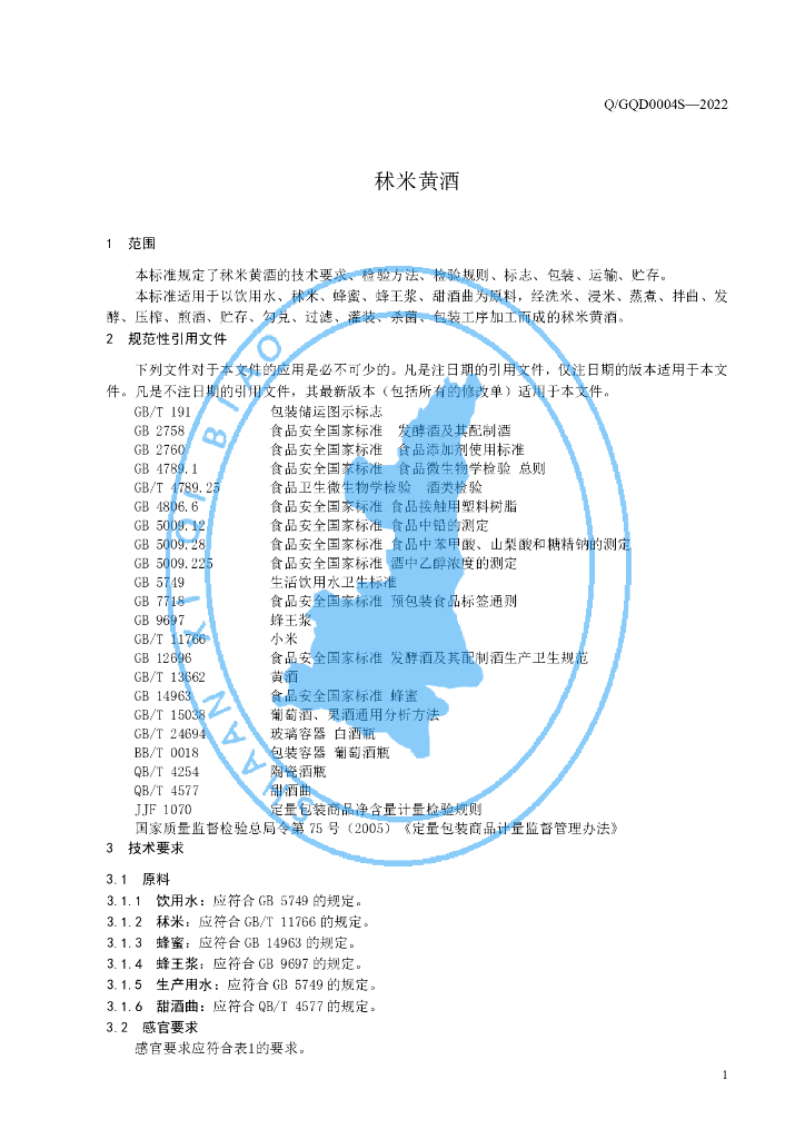 Q/GQD 0004S-2022 秫米黄酒