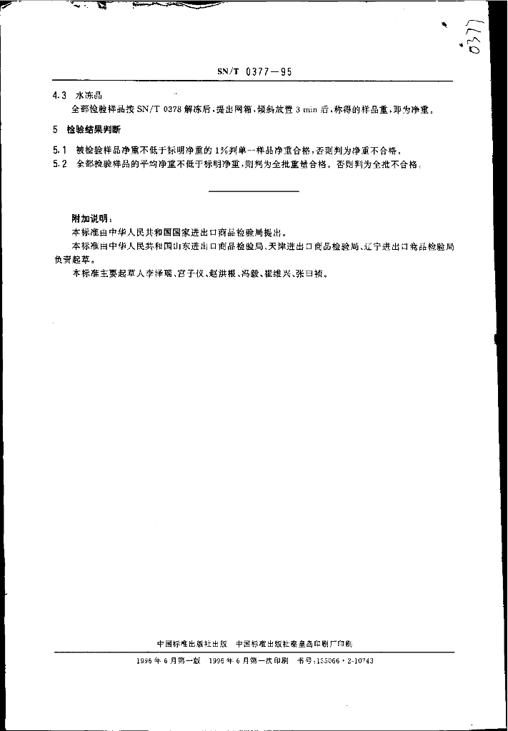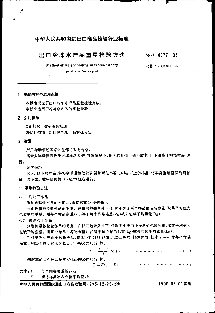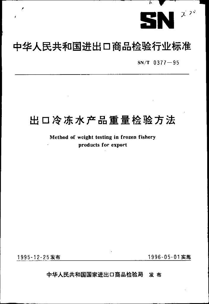 SN/T 0377-1995 出口冷冻水产品重量检验方法