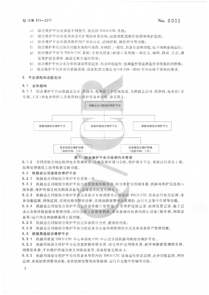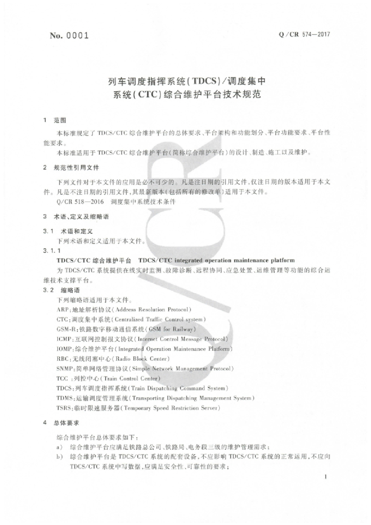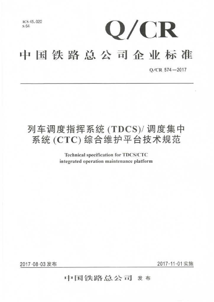 Q/CR 574-2017 列车调度指挥系统(TDCS)调度集中系统(CTC)综合维护平台技术规范