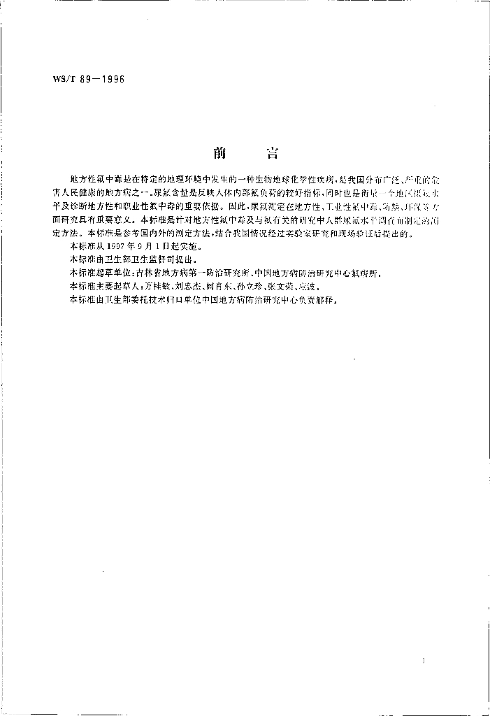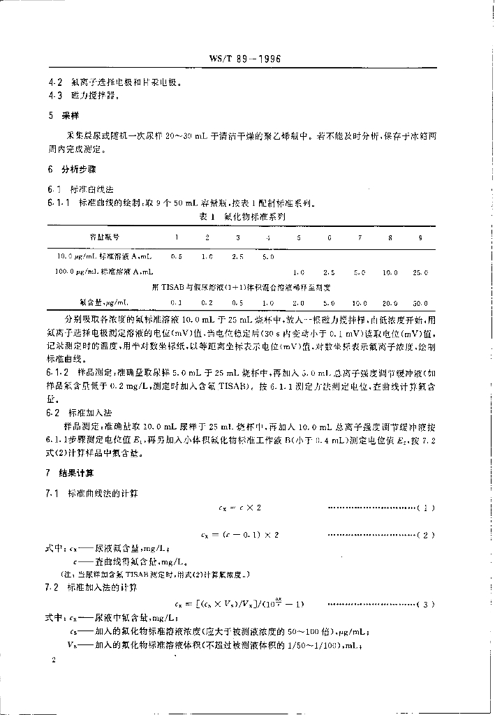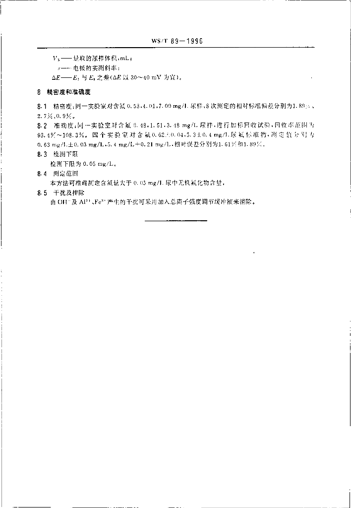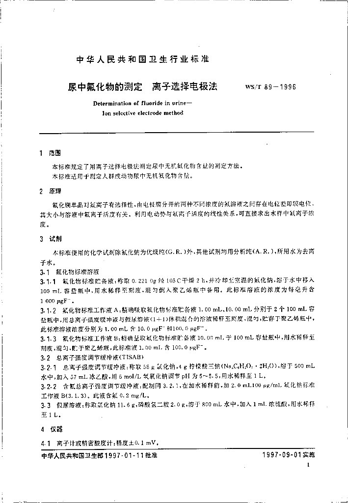 WS/T 89-1996 尿中氟化物的测定 离子选择电极法