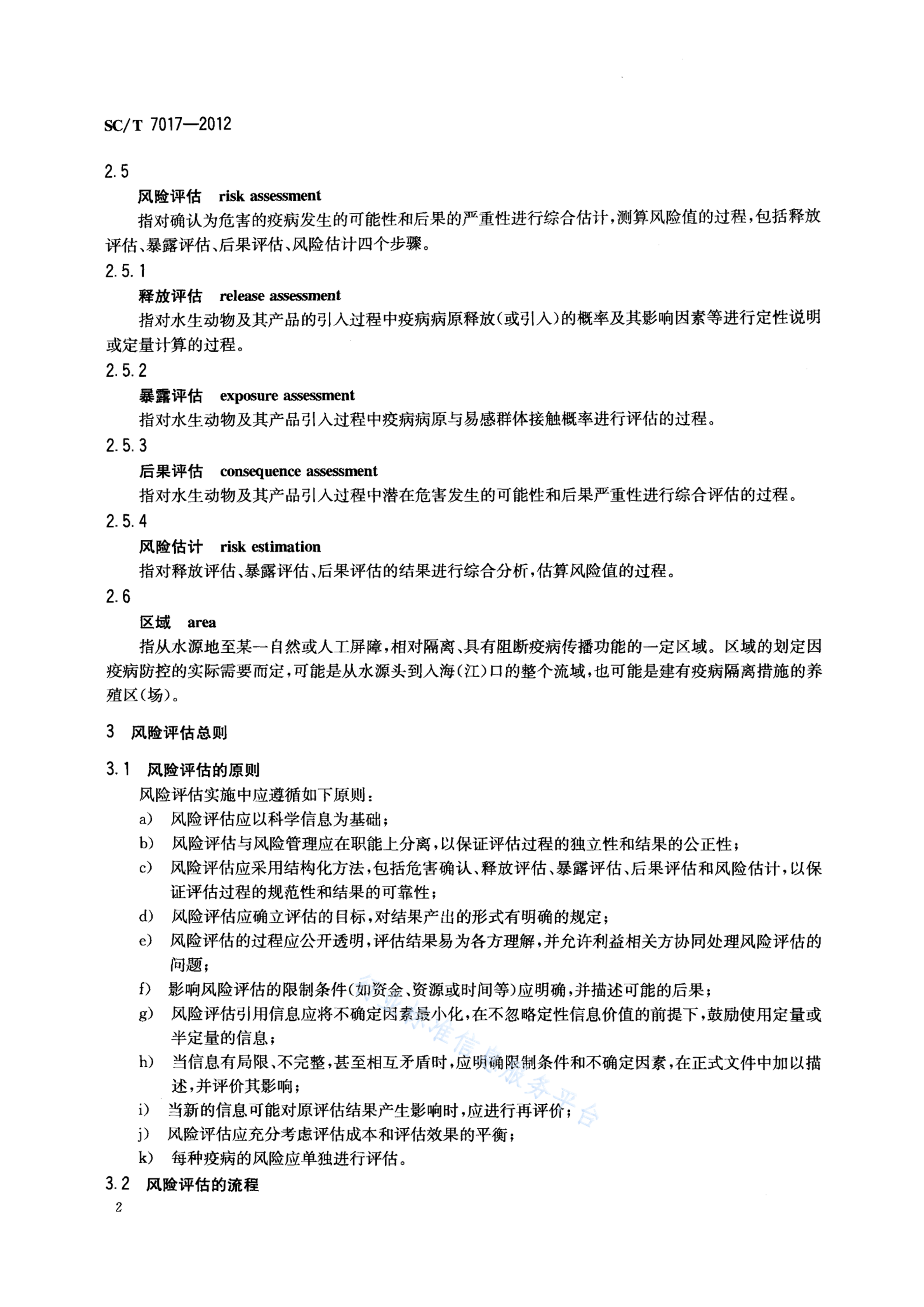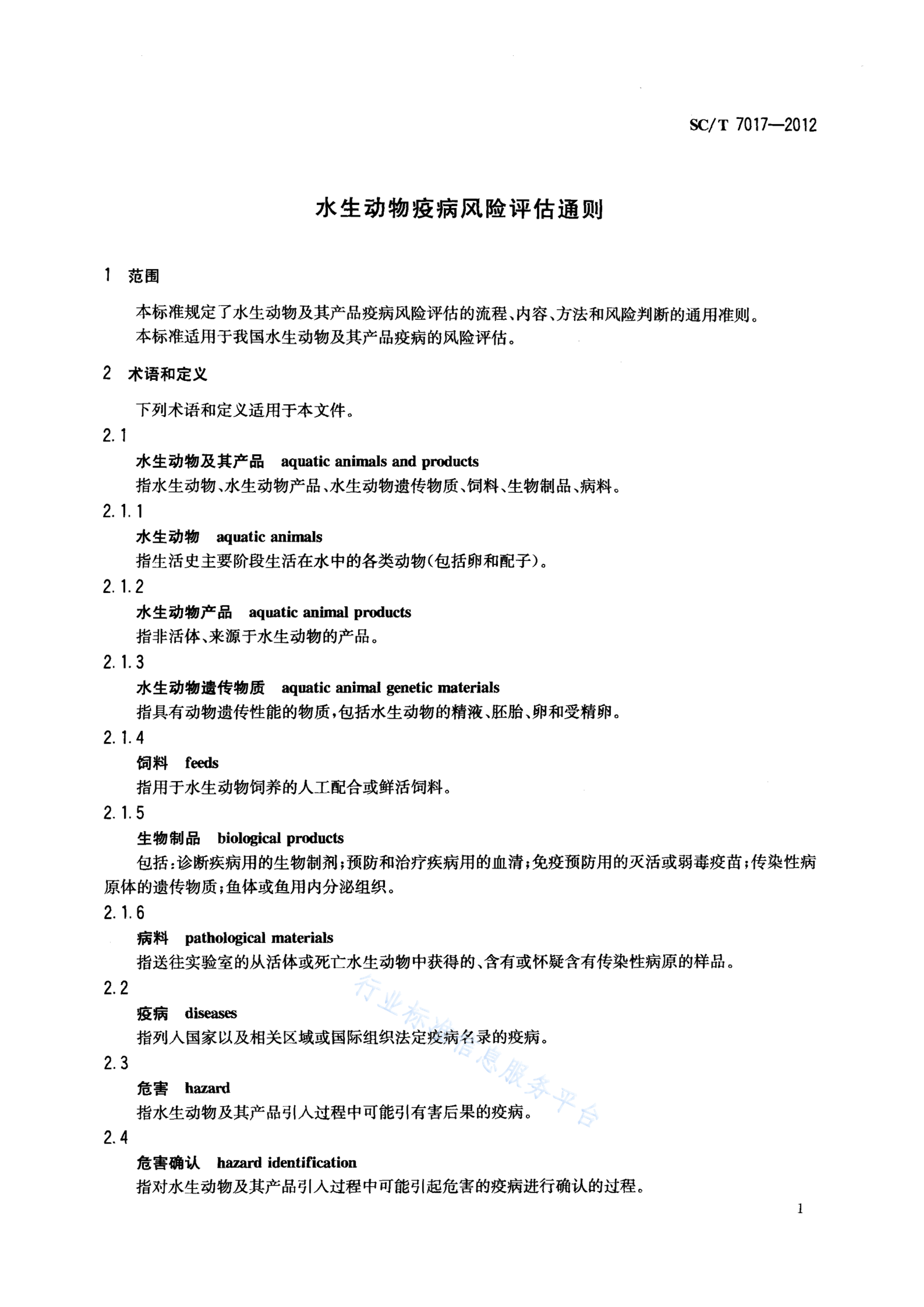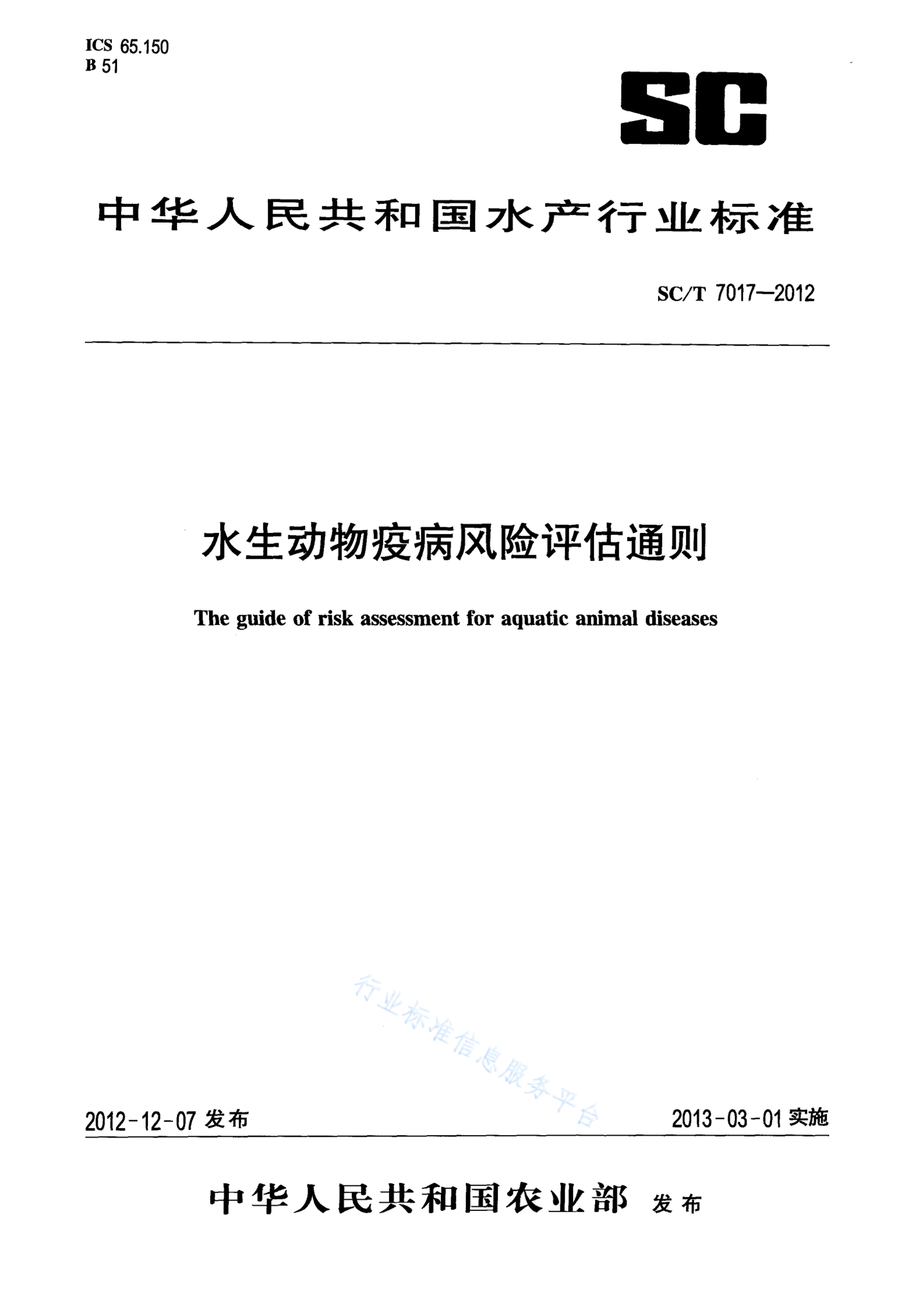 SC/T 7017-2012 水生动物疫病风险评估通则