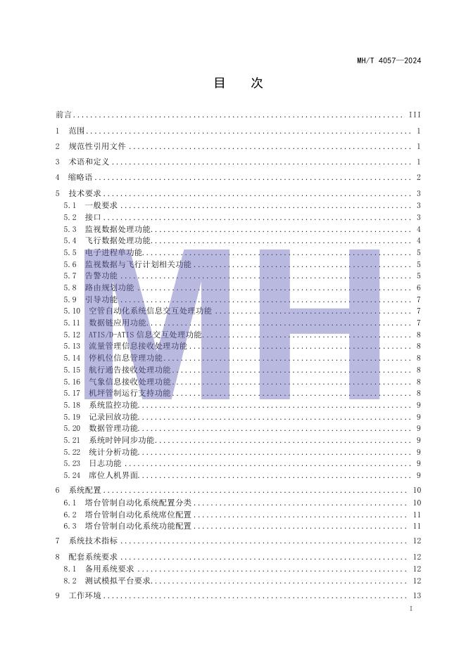MH/T 4057-2024 塔台管制自动化系统技术要求与配置规范