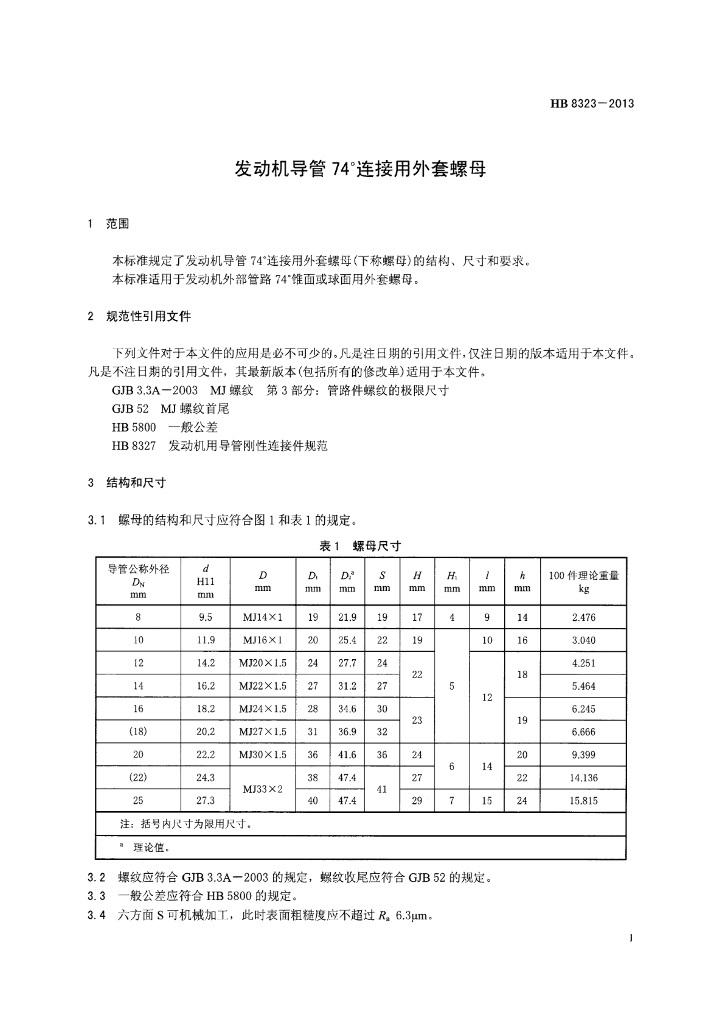 HB 8323-2013 发动机导管74°连接用外套螺母