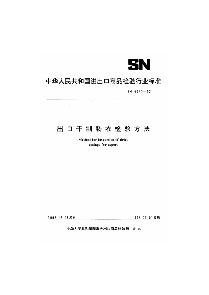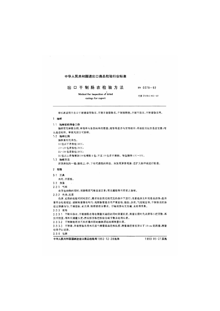 SN 0079-1992 出口干制肠衣检验方法