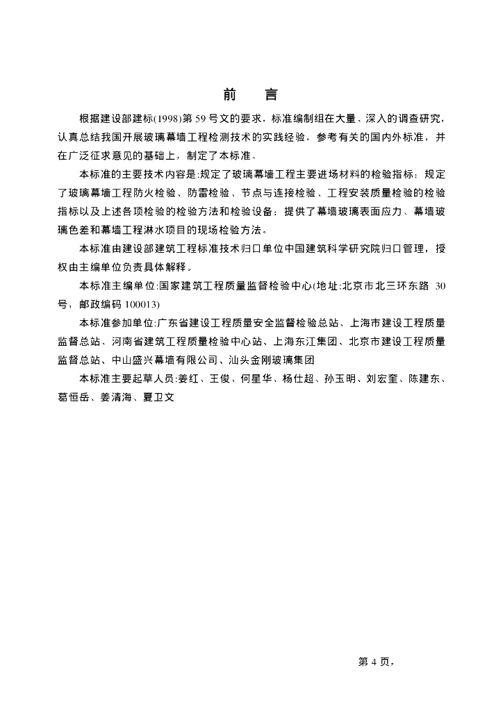 国家建筑工程质量监督检验中心、广东省建设工程质量安全监督检验总站、上海市建设工程质量监督总站、河南省建筑工程质量检验中心站、上海东江集团、北京市建设工程质園监督总站、中山盛兴幕墙有限公司、汕头金刚玻璃集团
